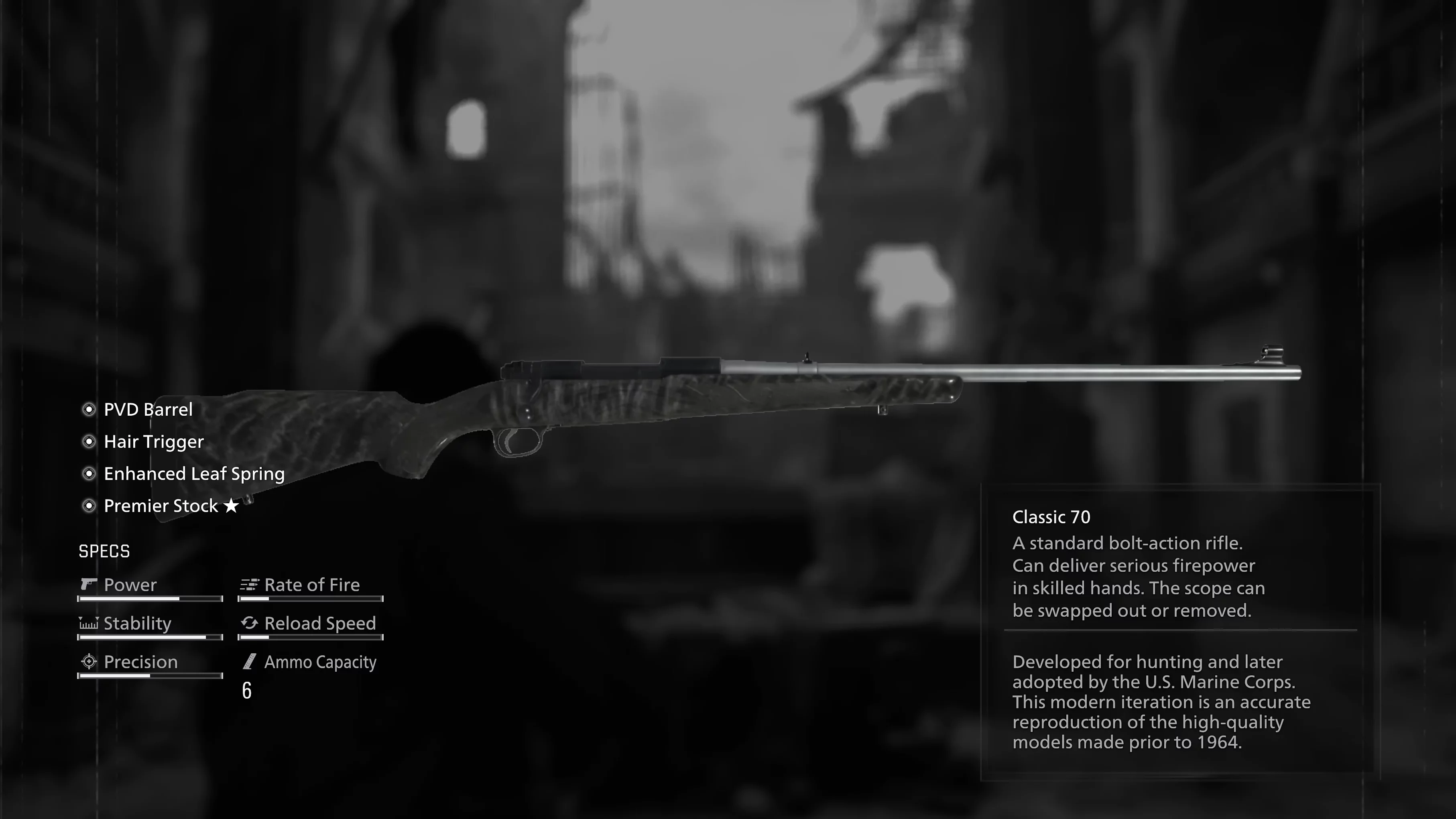 Автоматично екіпірується при вході Леона у двір Центру допомоги (Care Center Courtyard). Призначена для дальнього бою і дозволяє усувати цілі з безпечних підвищених позицій.