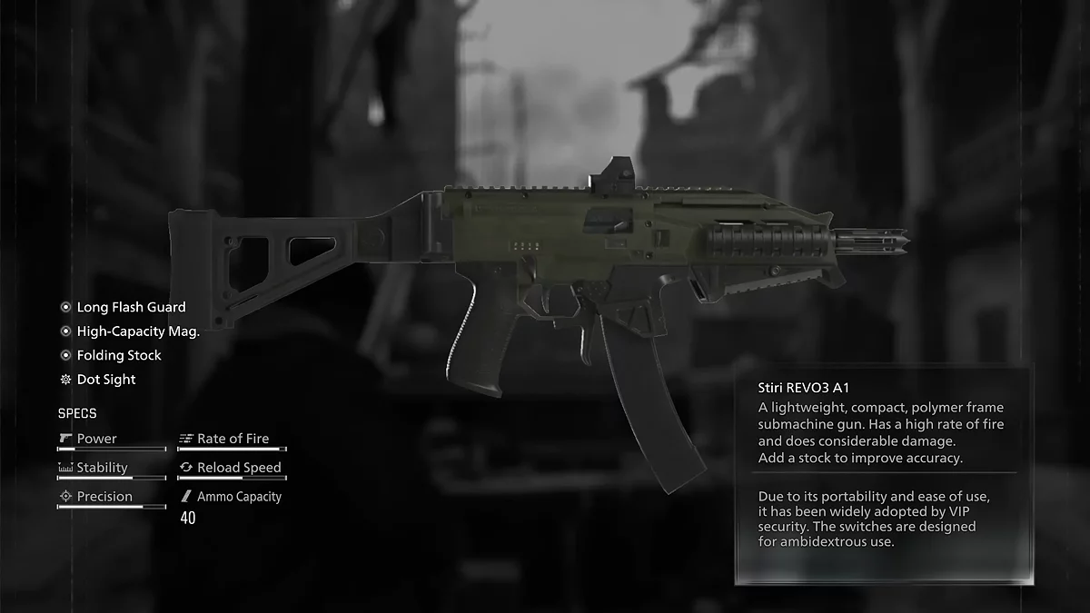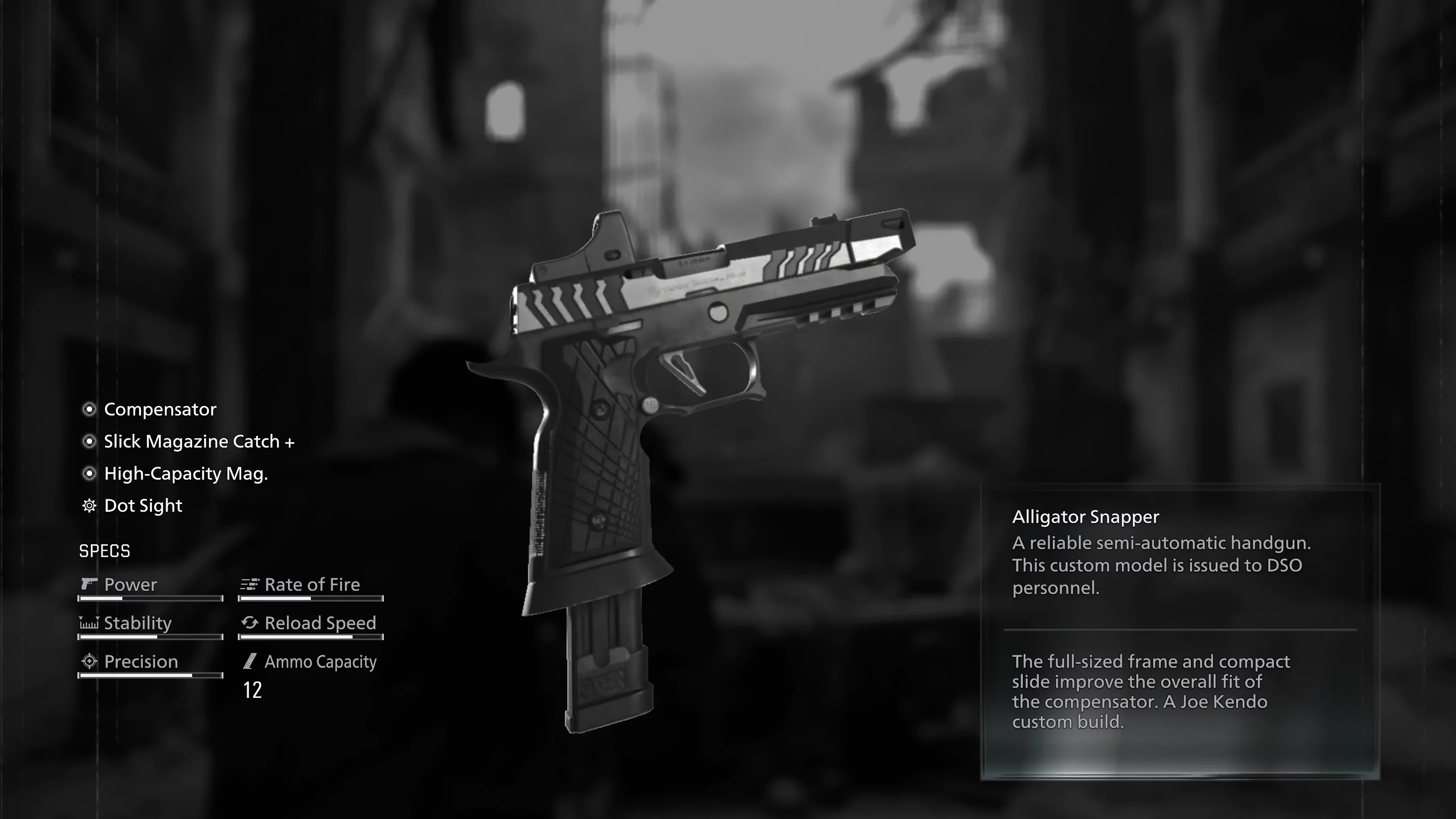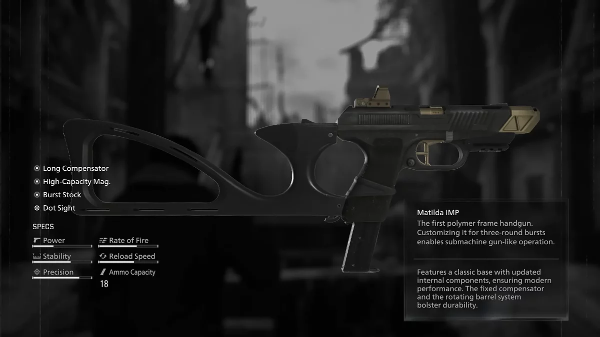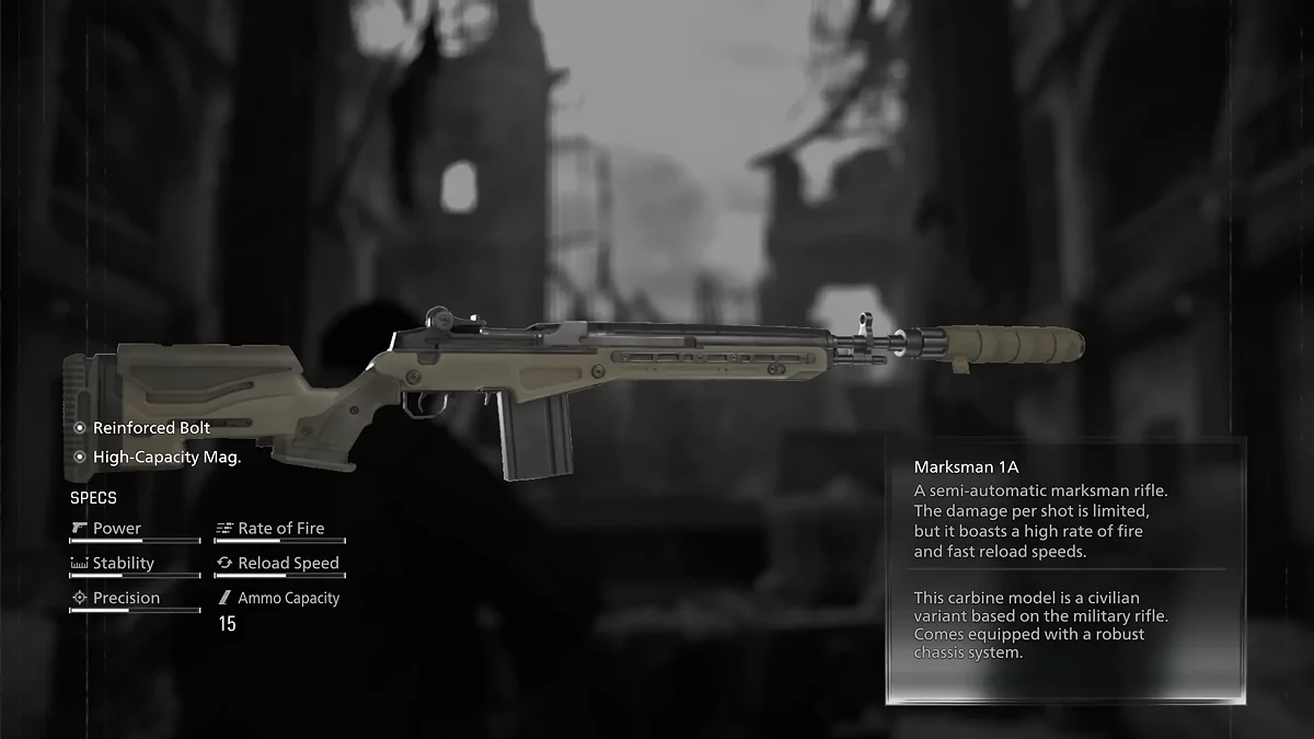 Стартова зброя Грейс, яка автоматично видається за сюжетом. Має збалансовану точність і високу зупиняючу силу, що робить її надійним вибором на ранніх етапах гри.