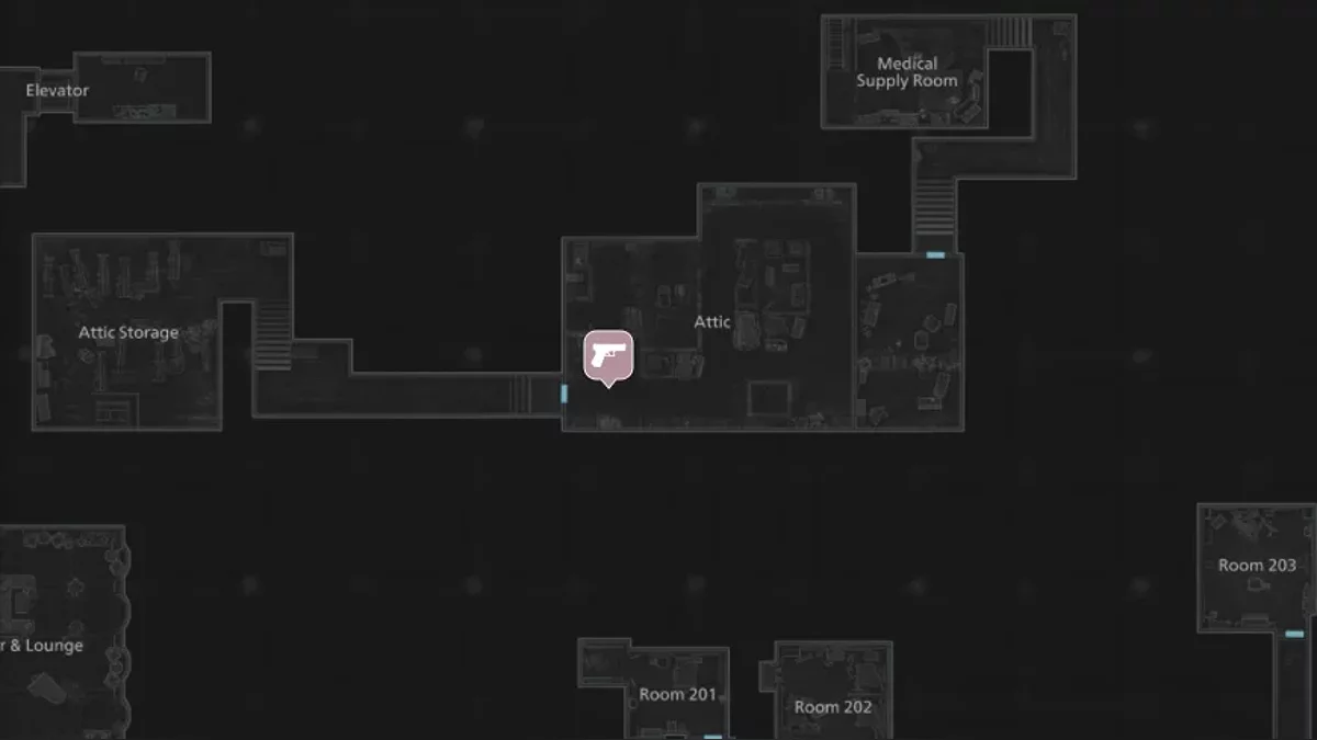 Лежить на підлозі в їдальні (Dining Room). У використанні трохи зручніший за стартовий револьвер і може використовуватися як альтернативний пістолет, особливо якщо вам важлива швидша перезарядка.