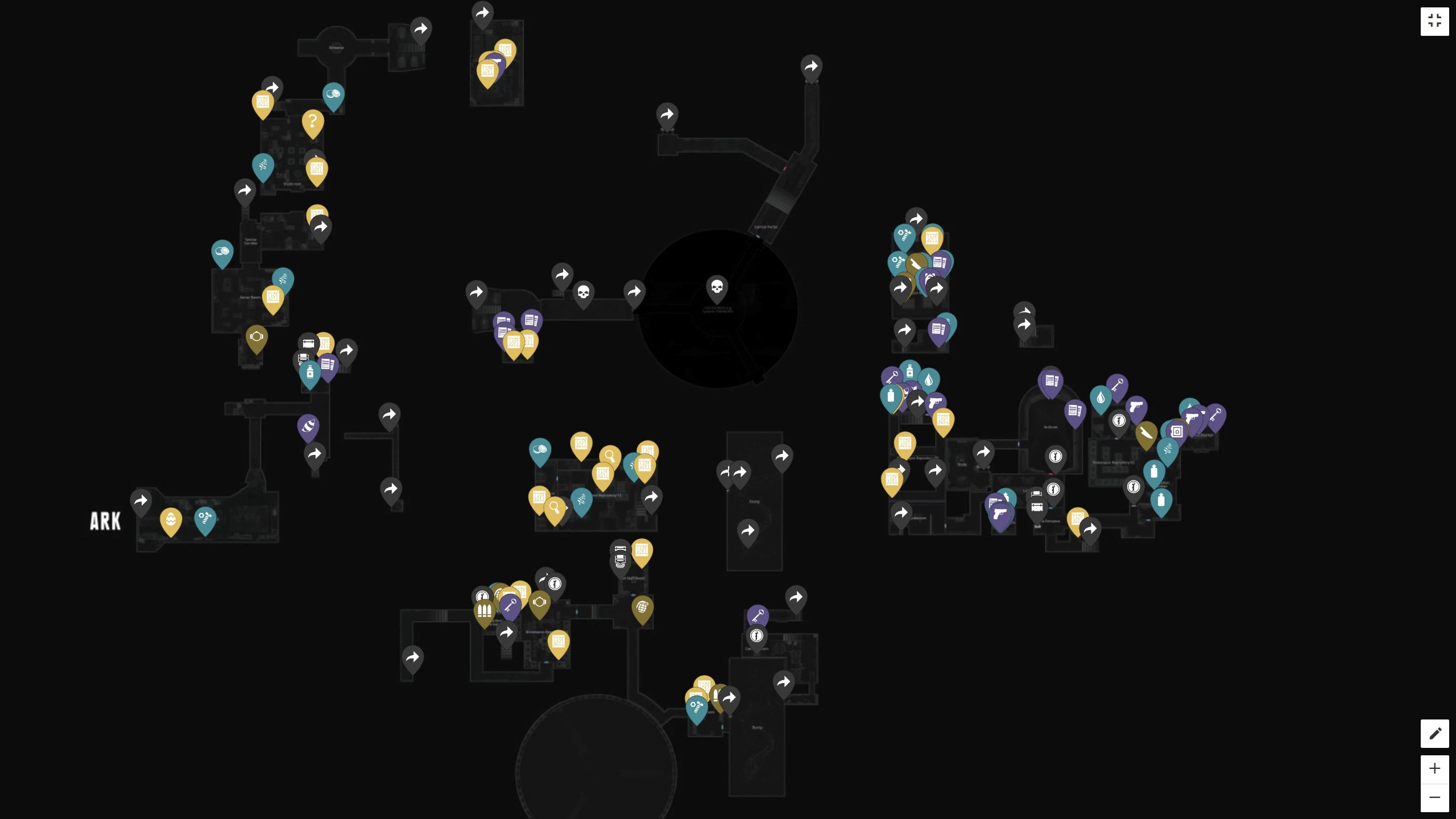 - Операційна зала (Operations Room): Єнот, Карта «Ковчега» (ARK Lab Unit Floor Plan);