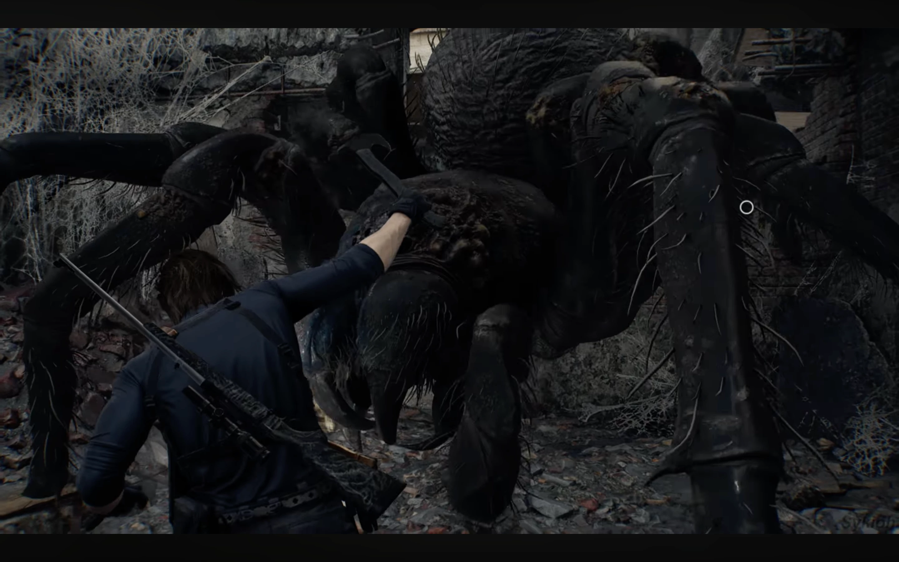 - Більшість контактних атак босів — навіть якщо ворог значно більший за Леона (протагоніст і сам майже зомбі, так що в цьому є логіка).