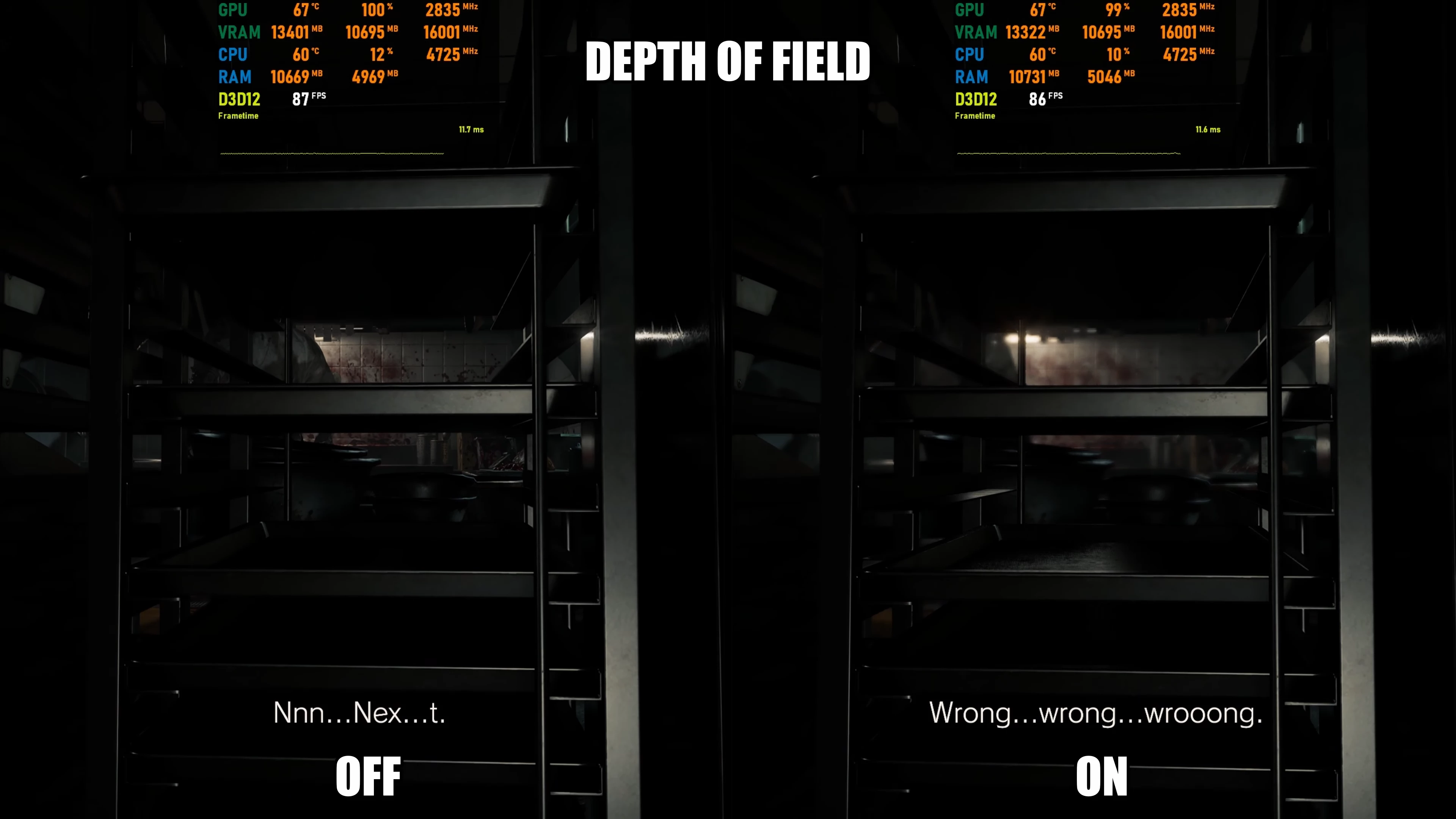 Глибина різкості впливає не тільки на ролики, але й на звичайний геймплей. У частині сцен вимкнення цього ефекту не змінює продуктивність, в інших дає близько 3 кадрів приросту, а в кат-сценах виграш може досягати 5 додаткових кадрів. Оскільки опція додатково розмиває фон і робить зображення м'якшим, для більш чистої картинки її краще вимкнути.