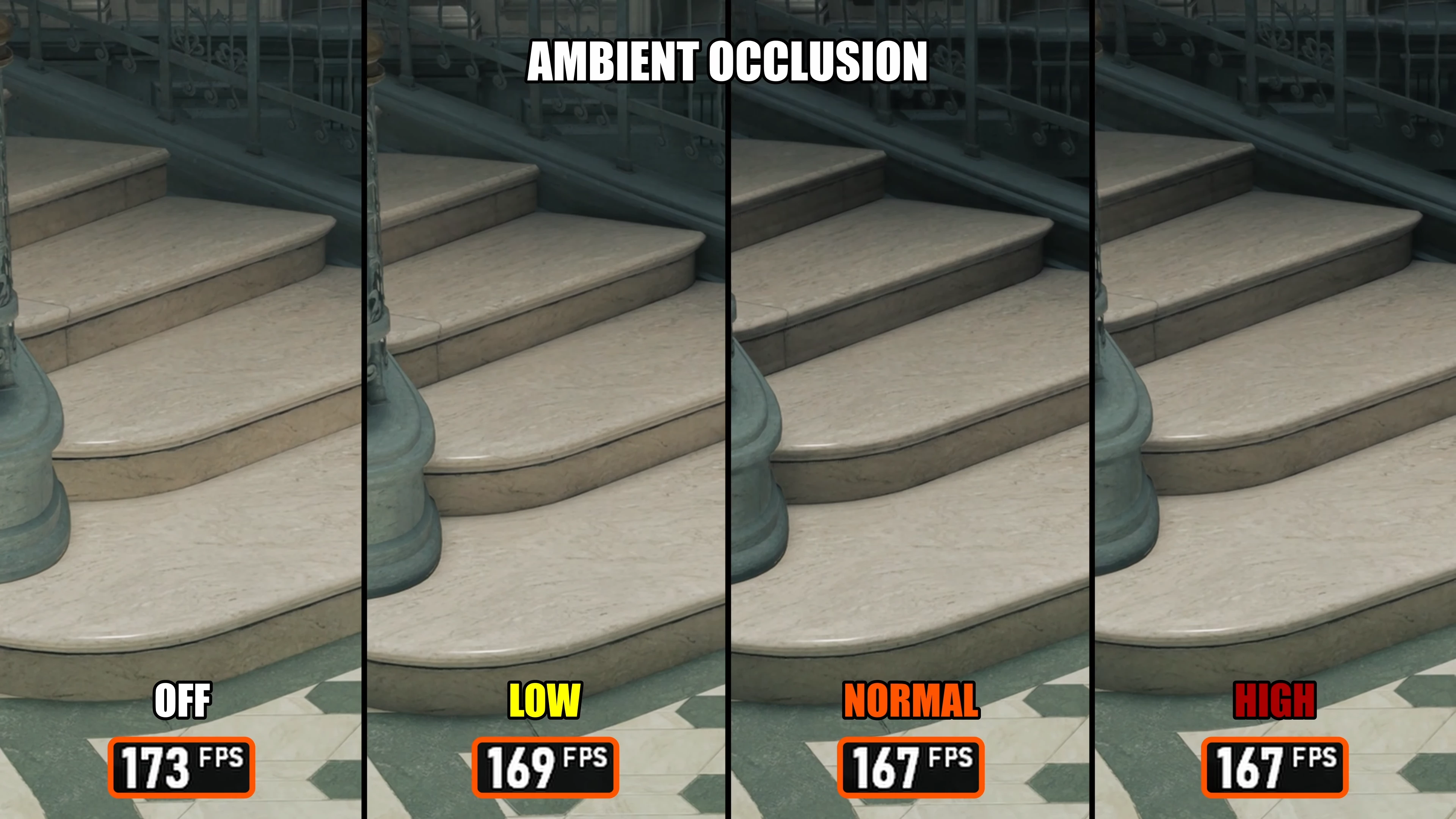 Цей параметр впливає на глибину сцени і опрацювання стиків між об'єктами. Різниця між високим і стандартним значеннями майже відсутня, низький рівень дає дуже невеликий бонус, а повне вимкнення повертає близько 5-7 кадрів до продуктивності. При цьому на високих режимах можуть проявлятися тимчасові артефакти і мерехтіння в тіньових ділянках. Найбільш практичним варіантом виглядає низький рівень.