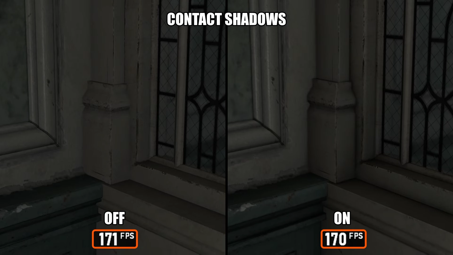 Ця настройка відповідає за контактні тіні в місцях дотику об'єктів з поверхнями і помітно впливає на об'єм сцени. При вимкненні деякі об'єкти починають виглядати відірваними від оточення. При цьому приріст продуктивності від вимкнення або відсутній, або знаходиться в межах похибки. Тому контактні тіні краще залишати увімкненими.