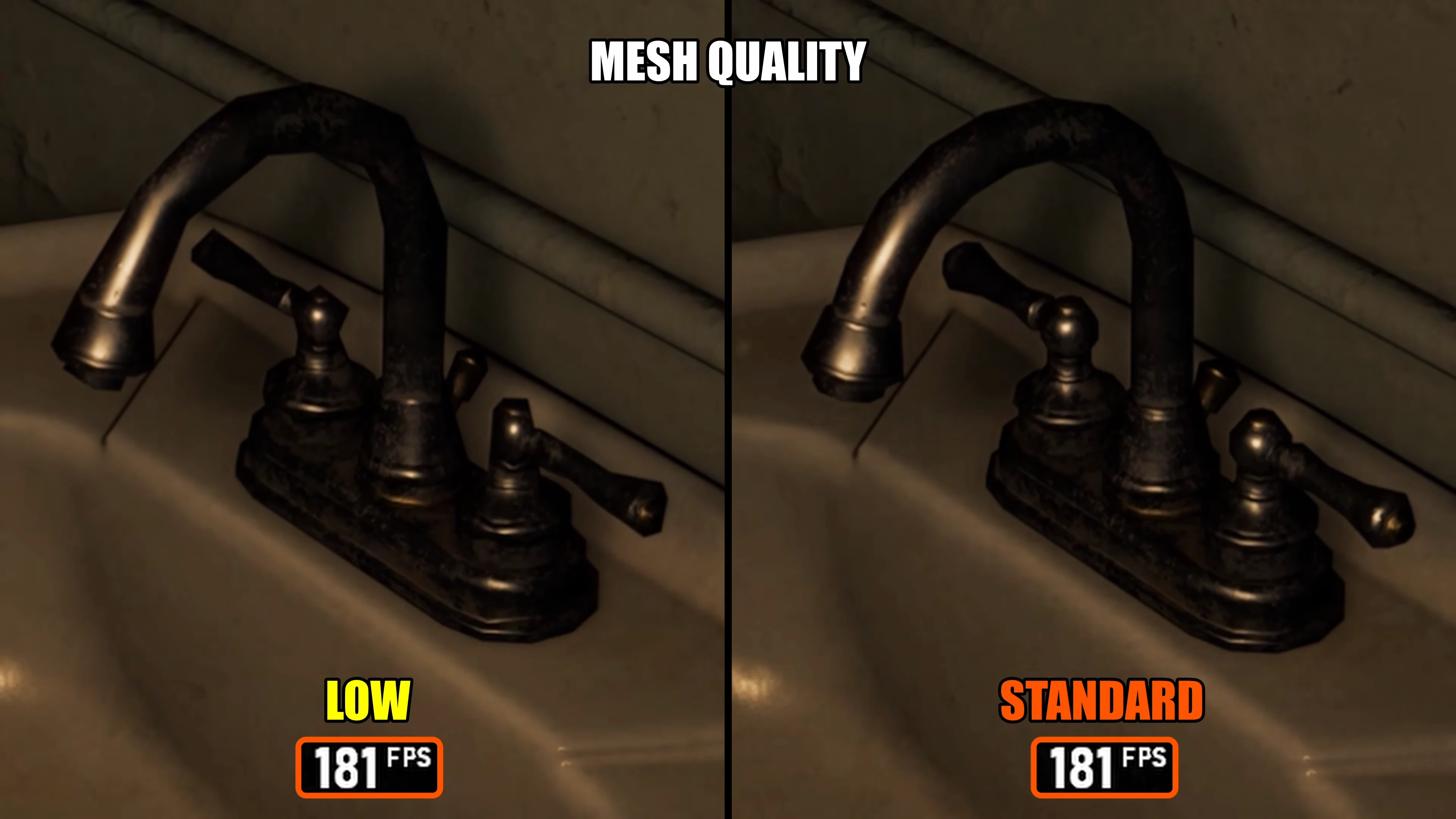 Якість геометрії в більшості сцен майже не змінює продуктивність, однак у складних локаціях може давати просадку понад 7 кадрів в секунду через зростання навантаження на процесор. Перехід на низьке значення зменшує геометричну деталізацію і щільність об'єктів, тому це налаштування не варто знижувати без необхідності. Оптимальним значенням залишається Звичайне (Standard).