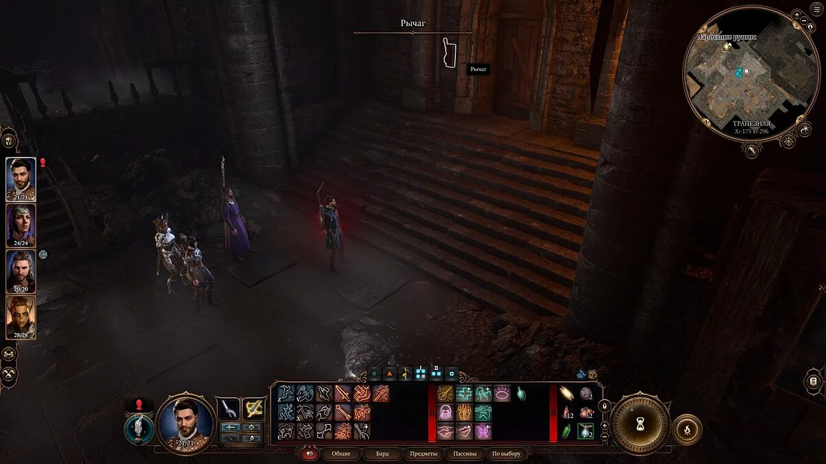 Если вам удалось взломать дверь рядом с камнем телепортации, то сразу попадете в склеп. Он наполнен ловушками. Будьте осторожны рядом с продухами и головами гаргулий. Без саперных инструментов вы не сможете открыть саркофаг и деактивировать ловушки. Чуть позже не забудьте вернуться в эту локацию, когда раздобудете необходимые инструменты.
