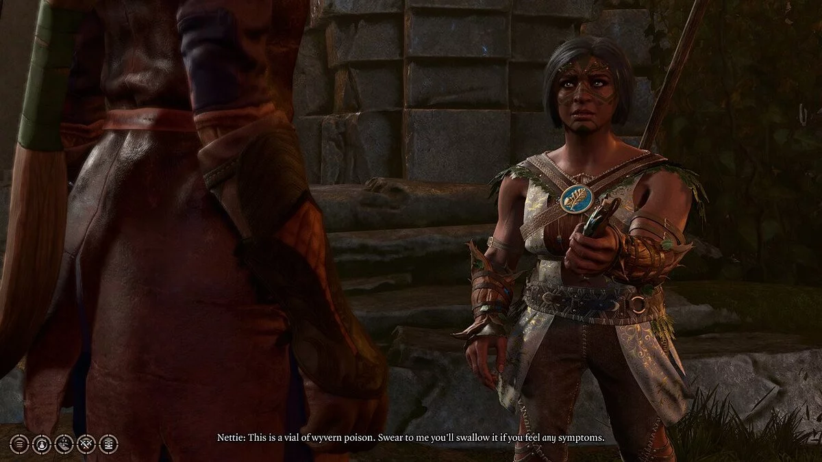 Отправляемся в рощу друидов и на нижнем уровне встречаемся с целительницей Нетти. Рассказываем ей о паразите и просим о помощи. Следуем за Нетти в другую комнату. Она обследует вашу группу и даст яд, чтобы уберечь от цереморфоза. Пройдите проверку на выявление отравленных свойств предмета и уличите Нетти во лжи. Не убивайте друида и пообещайте, что воспользуетесь ядом, если почувствуете, что превращаетесь в монстра.