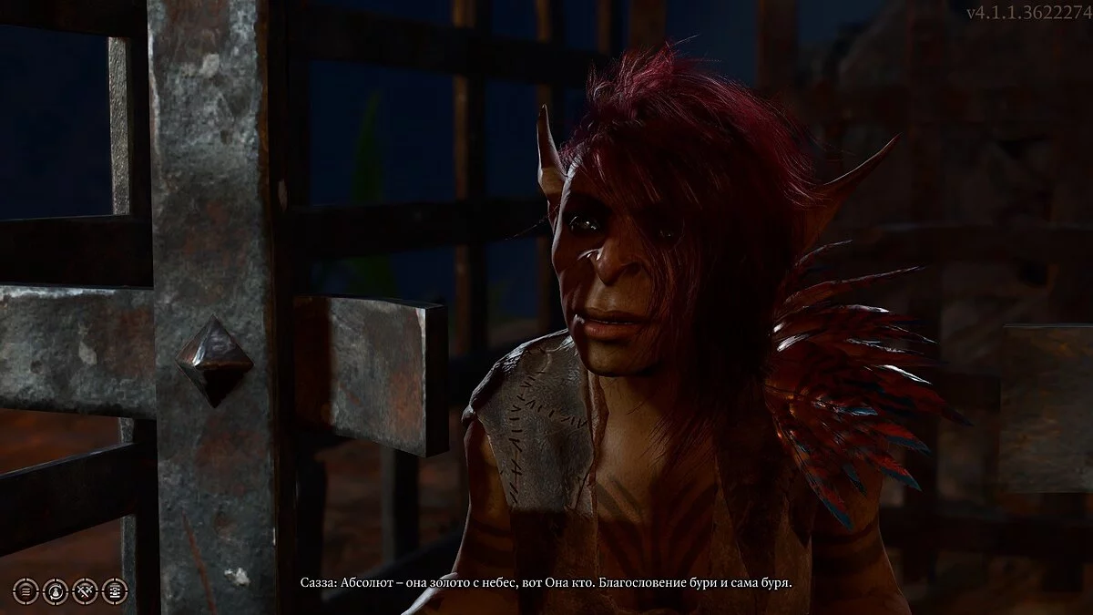 Возвращаемся в лагерь тифлигов. Двигайтесь на север до горного углубления. Заходите вовнутрь и просмотрите катсцену, в которой девушка тифлинг пытается застрелить из арбалета плененного гоблина. Закройте пленника своим телом и методом убеждения спасите его от смерти. Спасенная гоблинша Сазза расскажет вам о жрице своего племени, которая может вылечить абсолютно любую заразу. Она попросит освободить её из клетки и взамен отведет вас к целительнице.