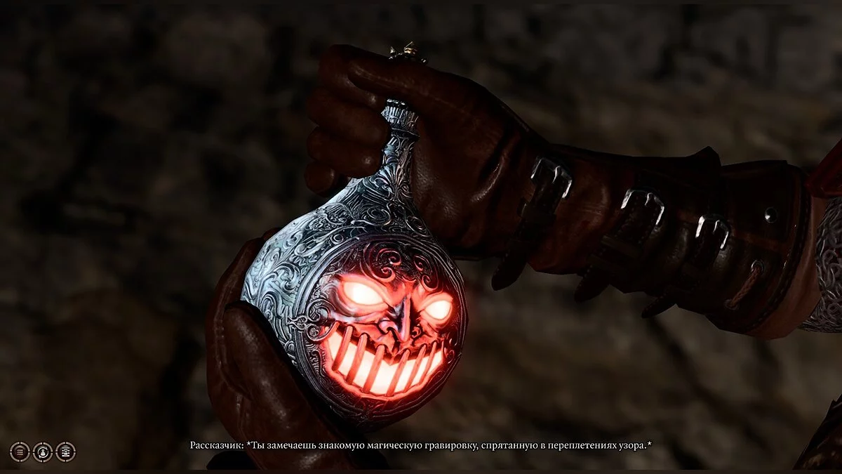 В лагере вы увидите, как Шэдоухарт пытается открыть непонятную штуковину. Аккуратно поспрашивайте об этой вещице, но не давите на жрицу. В одной из ночей проведенных в лагере, артефакт загадочным образом окажется в вашем инвентаре. Шэдоухарт примет этот факт и не таить обиду. Дроу Минтара, что мы повстречали в лагере гоблинов, будет расспрашивать об артефакте, но не в коем случае не рассказывайте о нем и не показывайте.