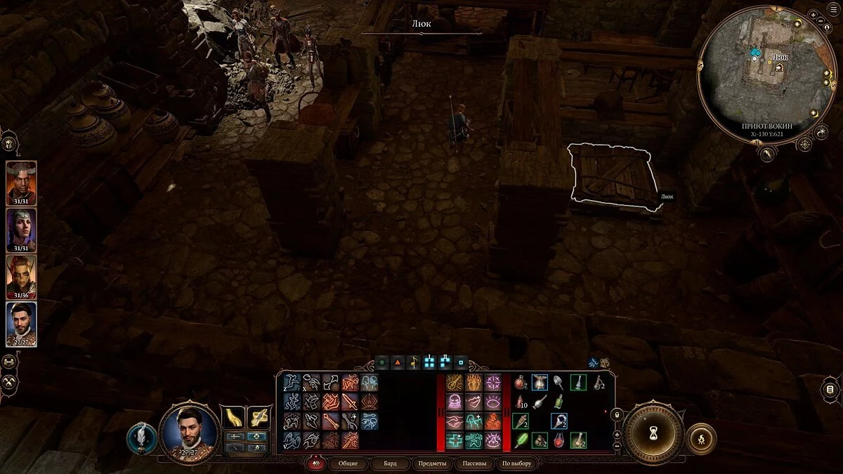 Рядом с амбаром справа есть пристройка. Войдите в нее. Вы увидите Салазона, который охраняет проход к подпольному убежищу. Поговорите с парнем и спускайтесь в люк. На севере будет тайный проход. Идите к нему. Далее пройдите через тропу, которая захламлена ловушками. Спустившись вниз, выкупите художника Оскара и дайте ему золота, чтобы он смог добраться до Врат Балдура. Далее вы увидите сцену, где караванщиков, что отдали вам сундук с бутылью, пытают. Вы можете помочь бедолагам или перебить Зентаримцев. Мы выбрали второй вариант.