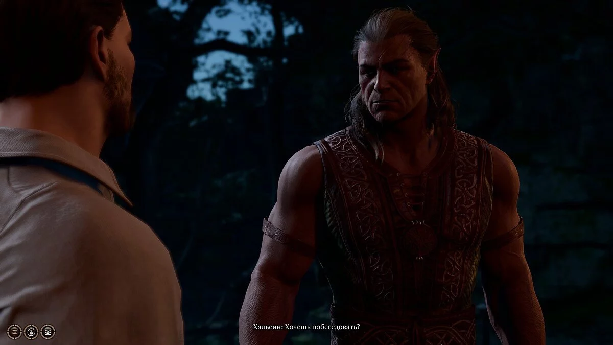 Разобравшись с остатками гоблинов, медведь превратится в человека. Это и есть тот самый друид Хальсин. Прежде чем он поможет вам избавиться от паразита, вам придется убить трех разных лидеров гоблинов, дабы обезопасить рощу друидов. Халсин предложит вам помощь в форме медведя, но предупредит, что не сможет пользоваться скрытностью. Отказываемся от помощи и выходим из зала.