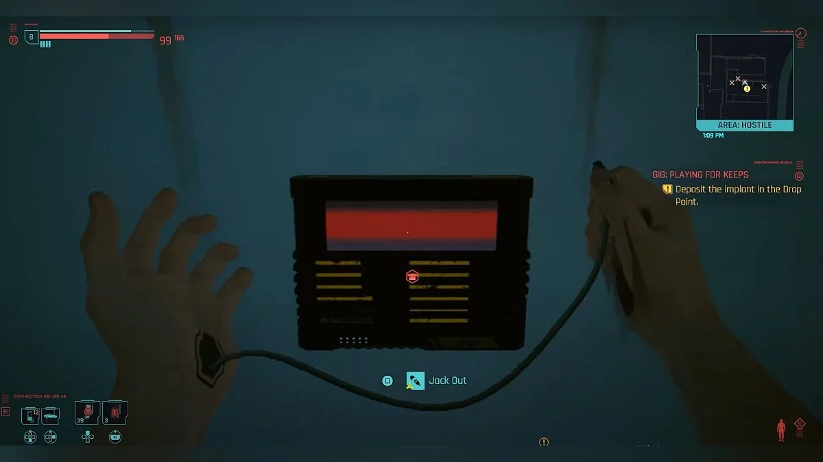 - Взламывайте точки доступа (Access Point). Они представляют собой компьютеры, которые установлены на стене. Чаще всего точки доступа встречаются на вражеской территории. Если у вас получится взломать ее, то вы получите полный доступ ко счету владельца. Когда достигнете 5-го уровня Интеллекта, приобретите перк «Улучшенная добыча данных» (Advanced Datamine). С ним ваша награда вырастет на 50% или 100%, в зависимости от его прокачки. Средняя сумма, которую вы будете получать при взломе, достигнет 600 евродолларов. Имейте ввиду, что подобная процедура считается преступлением.