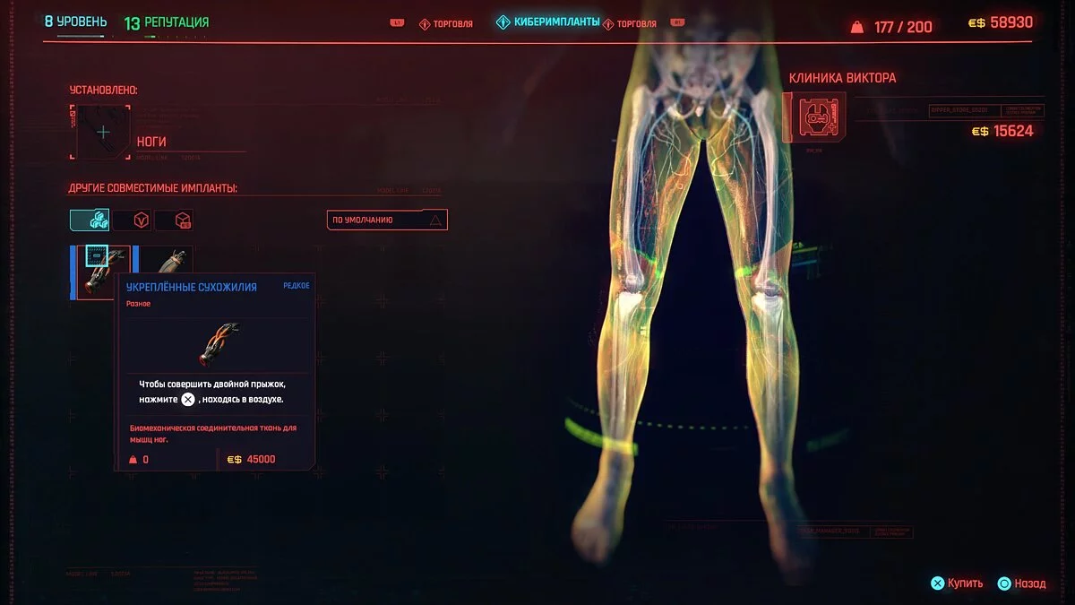 Как сделать двойной прыжок в Cyberpunk 2077. Где найти укреплённые лодыжки и сухожилия
