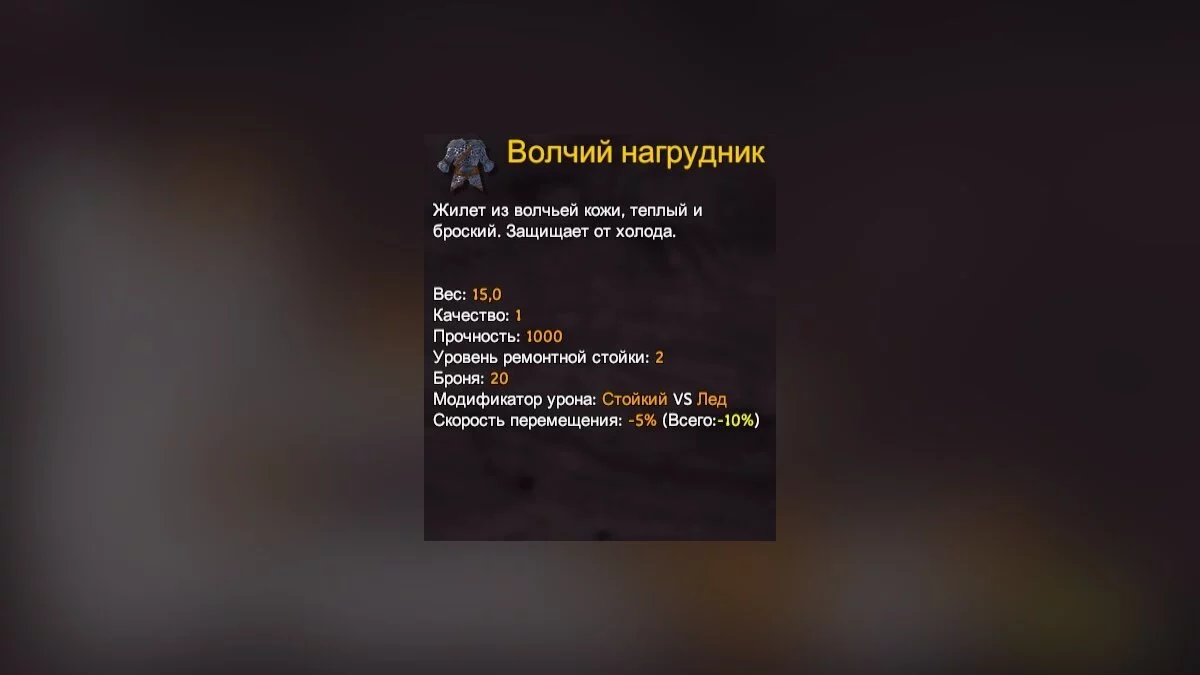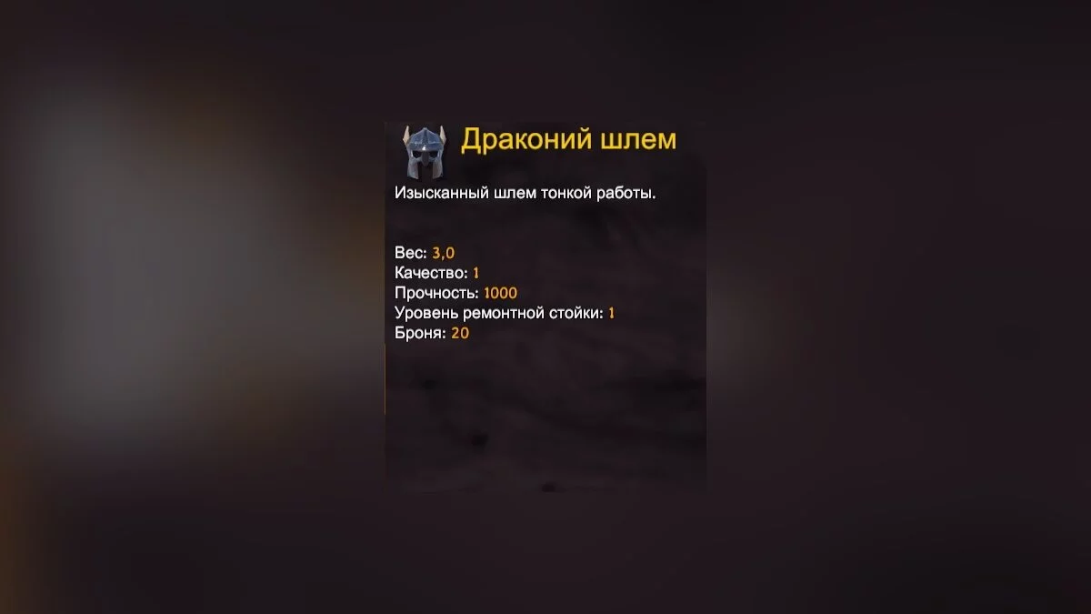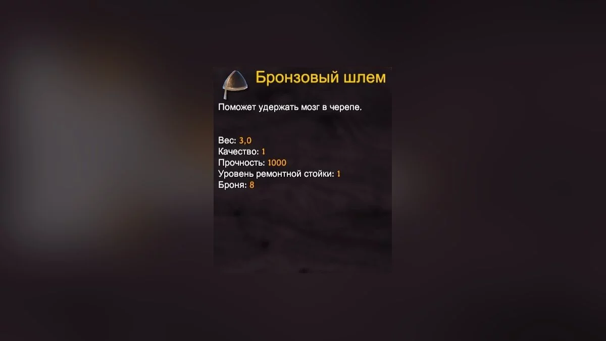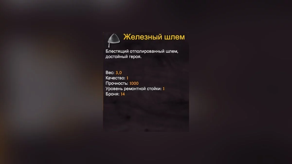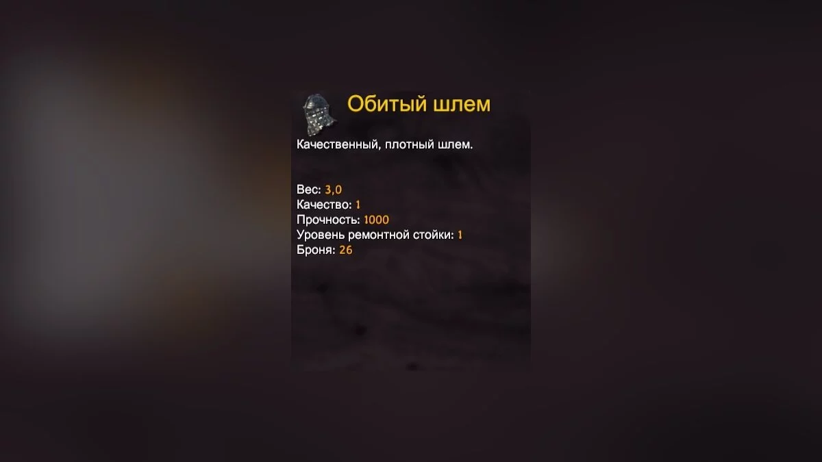 Первый элемент экипировки — шлем. Его основной атрибут — броня, дополнительной защитой от холода не обладает.