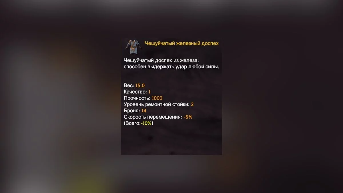 - Ресурсы для изготовления: железо (20 шт.), шкура оленя (2 шт.).