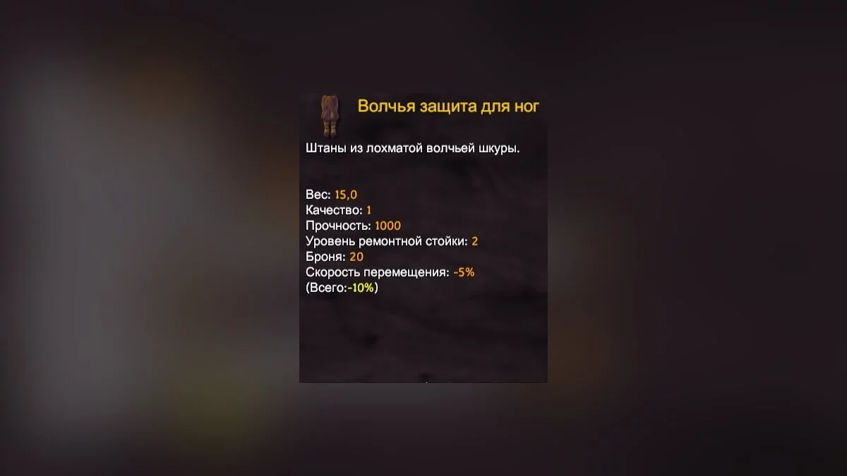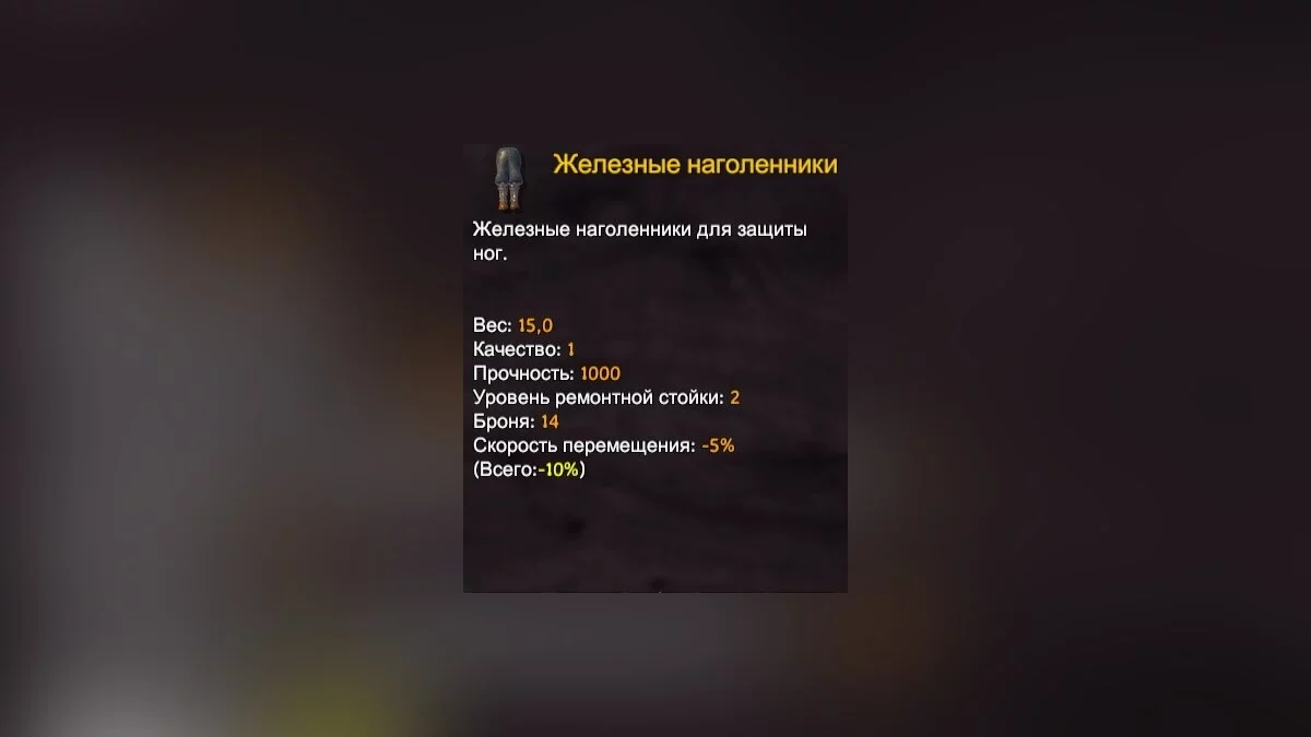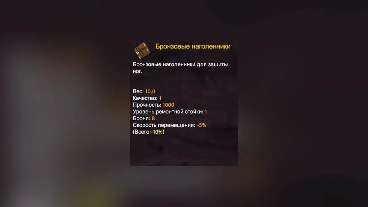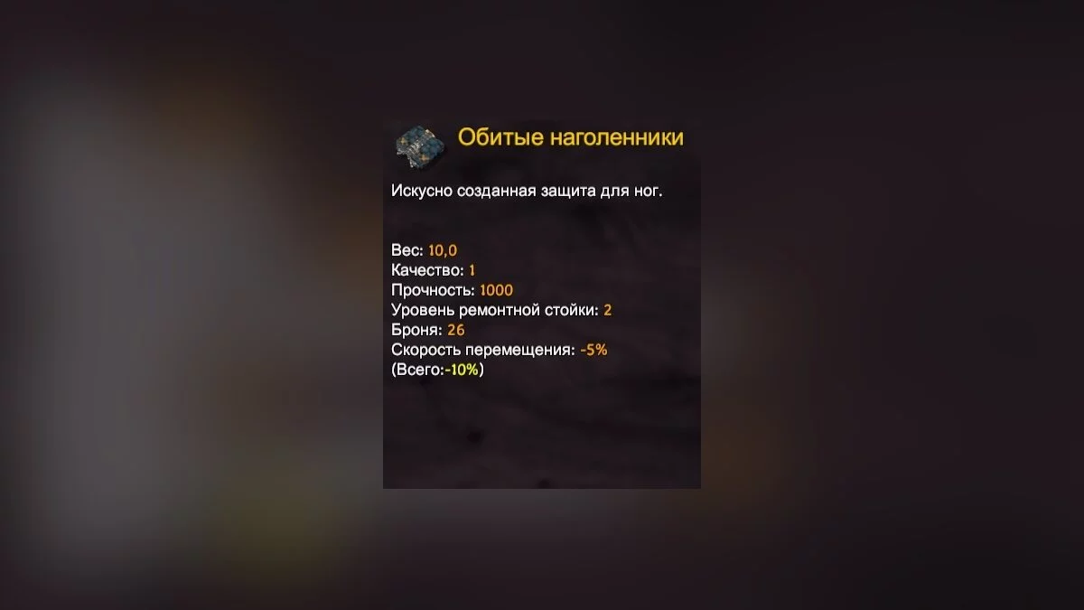 Третий элемент экипировки — наголенники. Как и шлем, они дают лишь прибавку к броне, без защиты от холода.