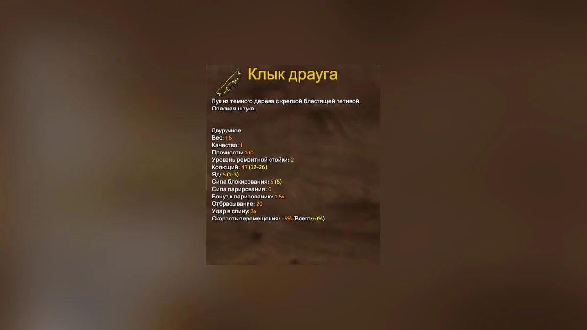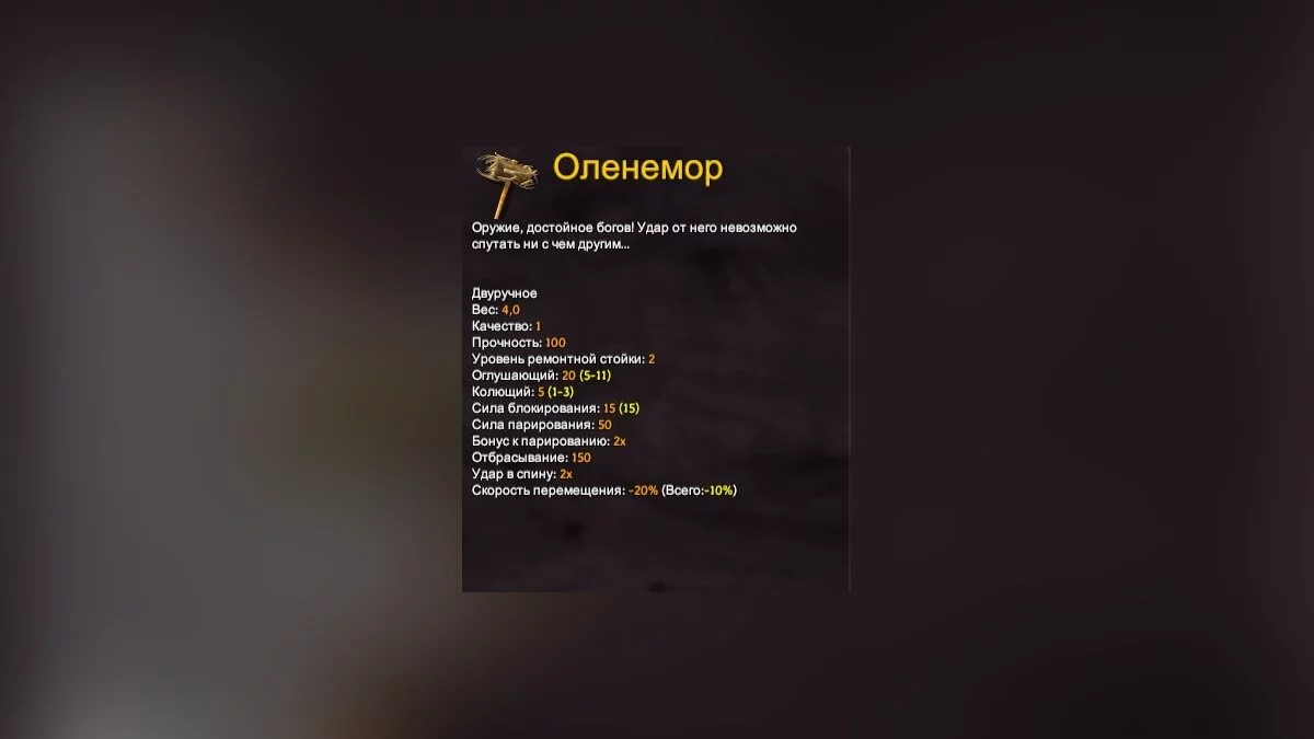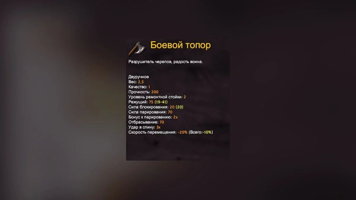 Одноручное оружие с режущим уроном. Незначительно замедляет персонажа (на 5%).