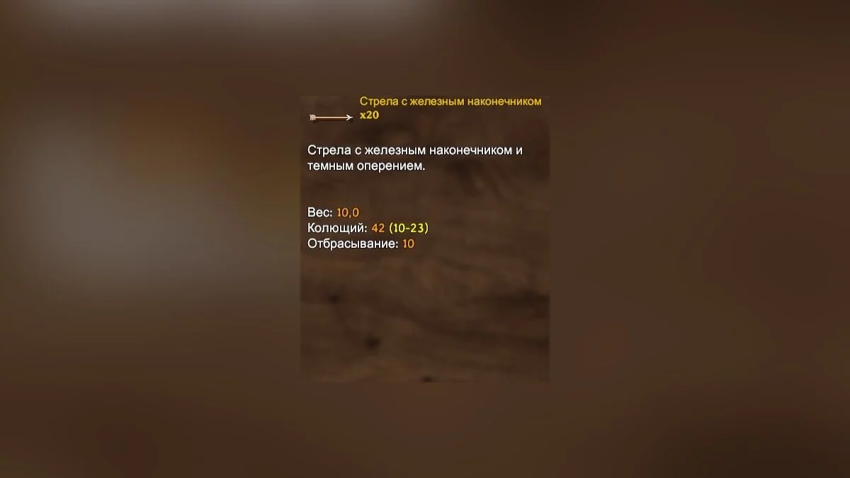 - Ресурсы для изготовления: качественная древесина (10 шт.), железо (20 шт.), перья (10 шт.), шкура оленя (2 шт.).