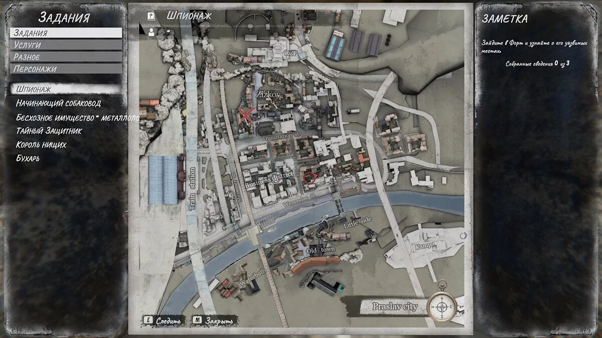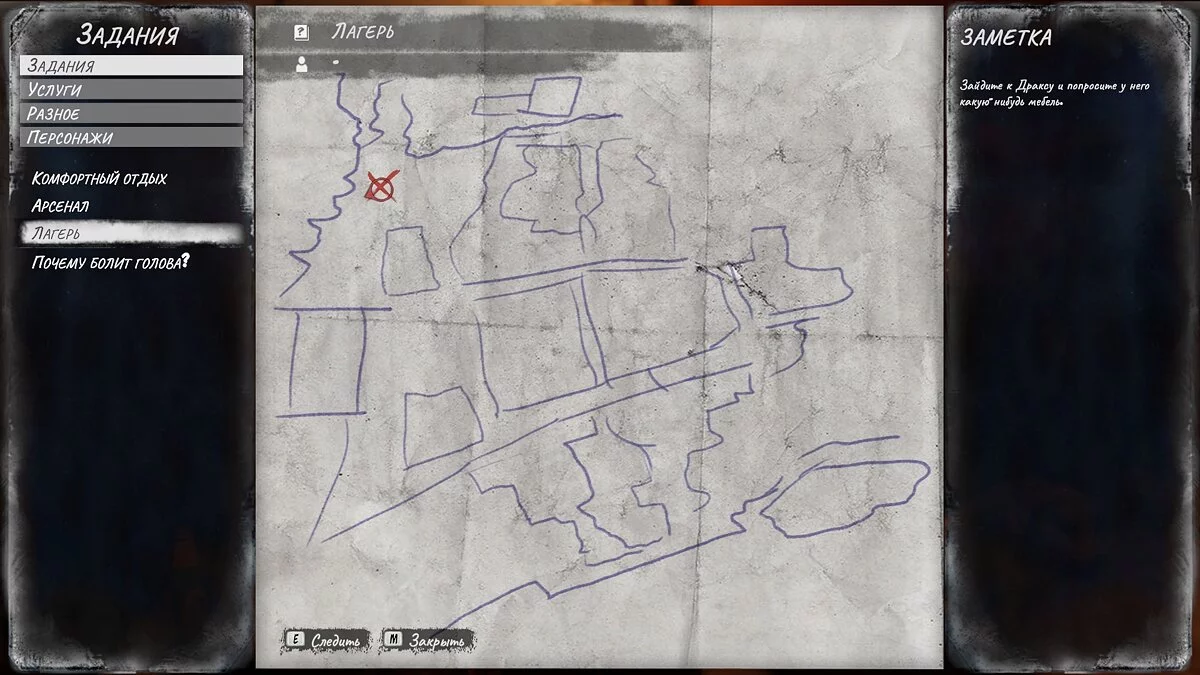Выполнить некоторые задания можно только в определённой области на игровой карте. Чтобы отследить местоположение квестовых объектов или персонажей, откройте карту (клавиша «M») и в левой части экрана выберите задание. На карте появится специальный маркер, к которому вам нужно проследовать.
