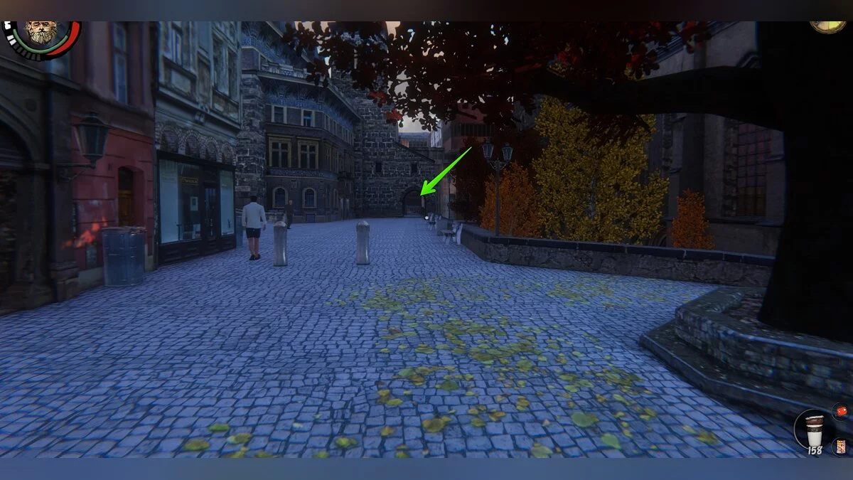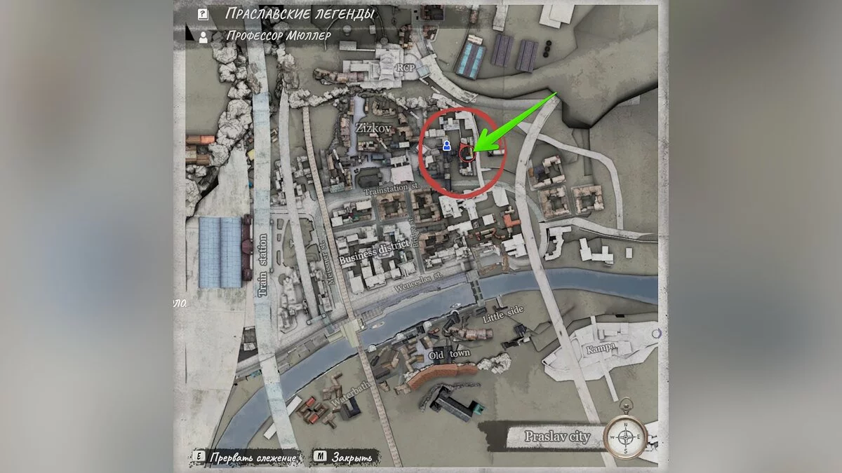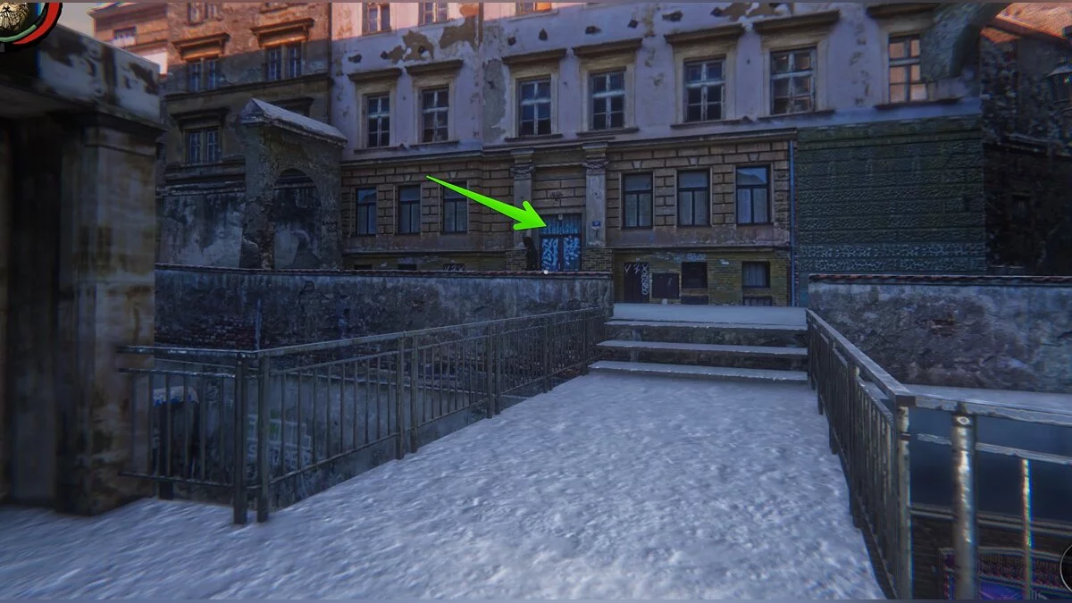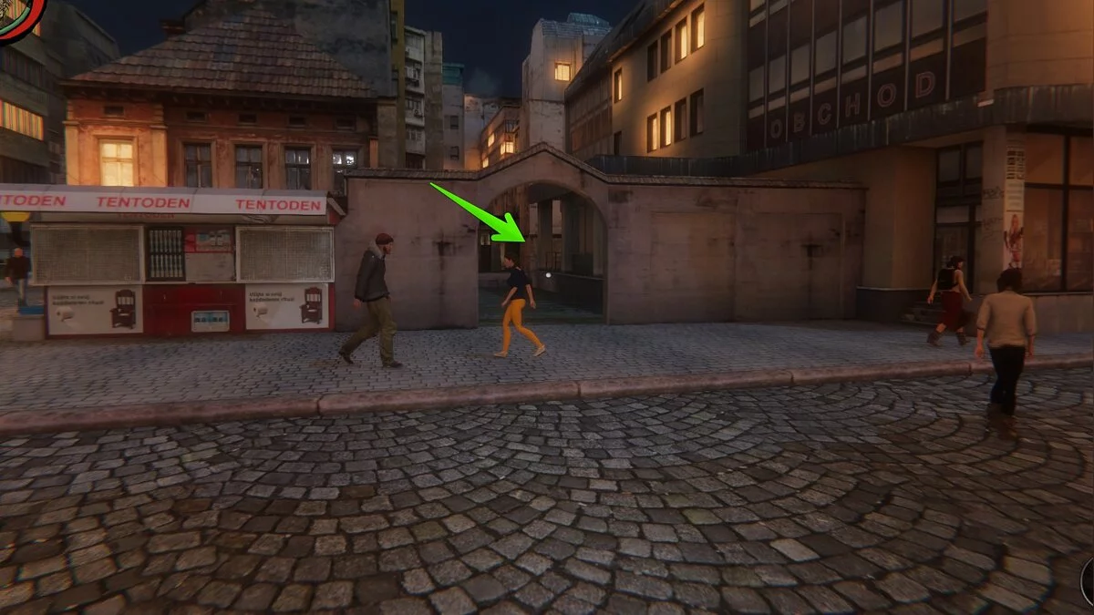 Позади жилища Мюллера вы найдёте неприметный проход с единственной дверью. Здесь поговорите с мужчиной по имени Збышек. Вернитесь к профессору и получите ещё 100 крон.