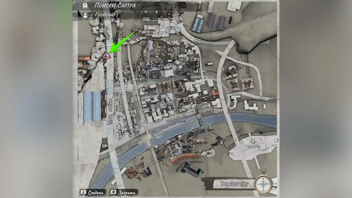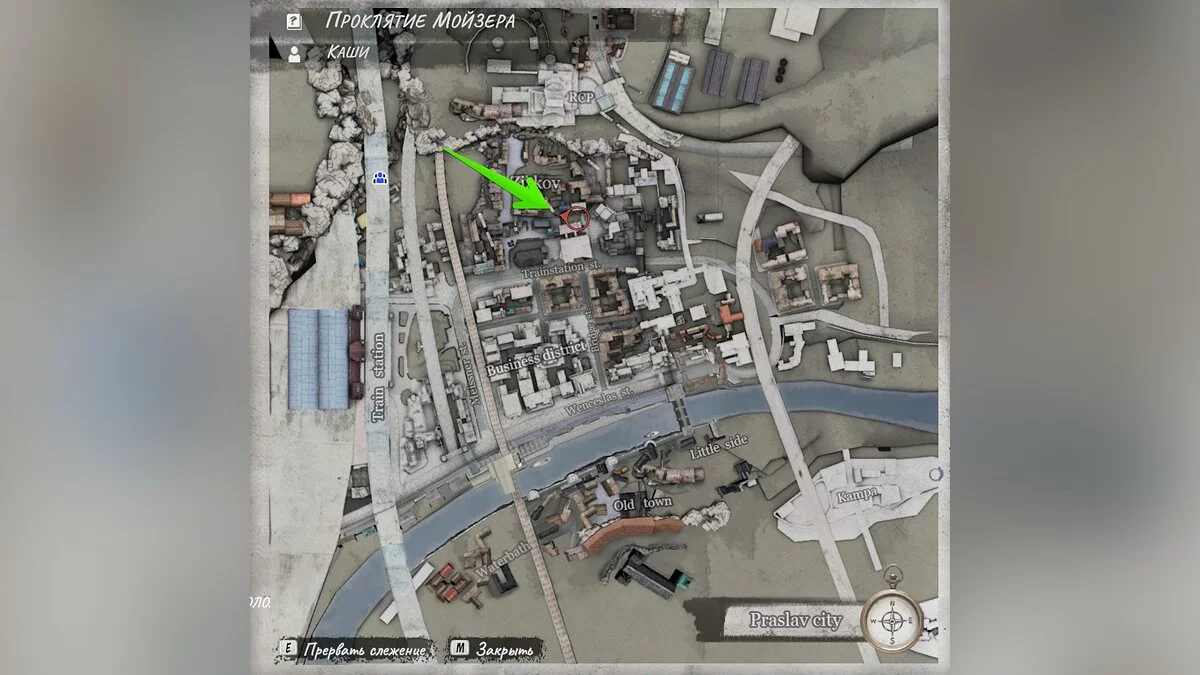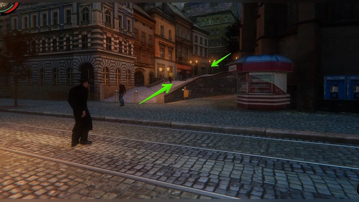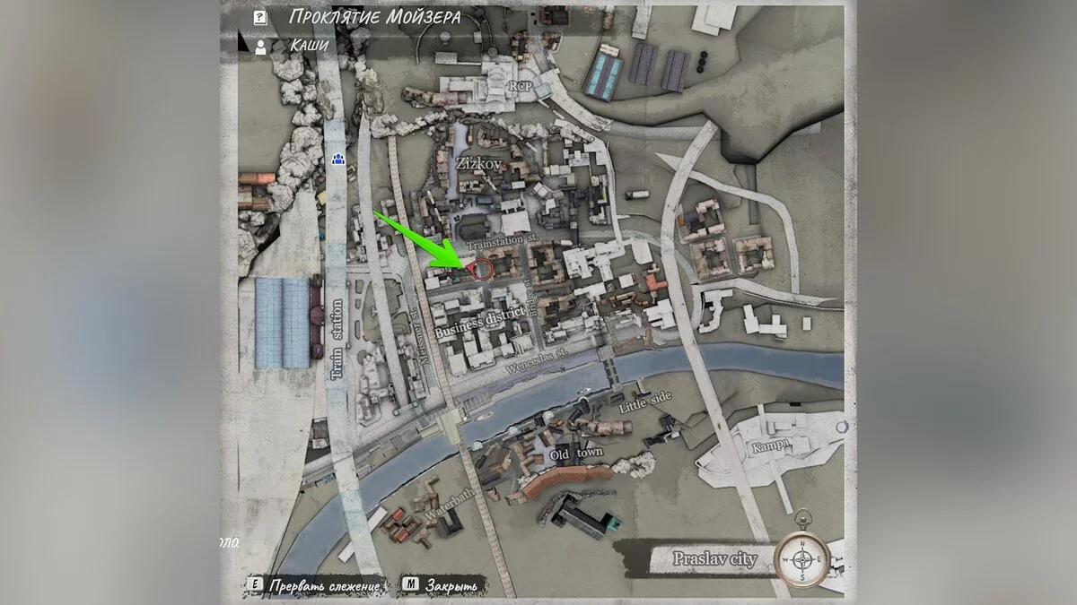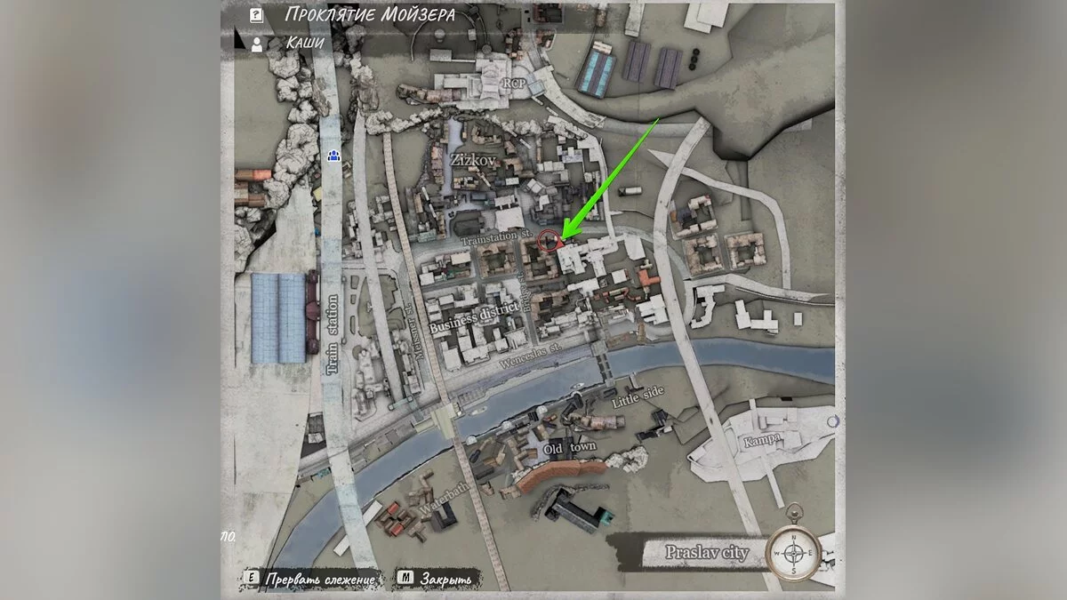 Позади жилища Мюллера вы найдёте неприметный проход с единственной дверью. Здесь поговорите с мужчиной по имени Збышек. Вернитесь к профессору и получите ещё 100 крон.