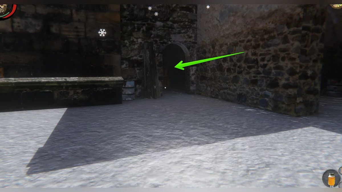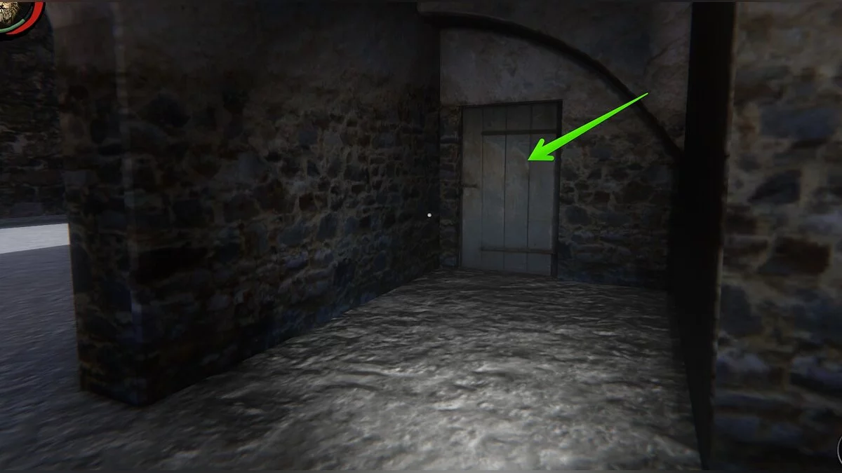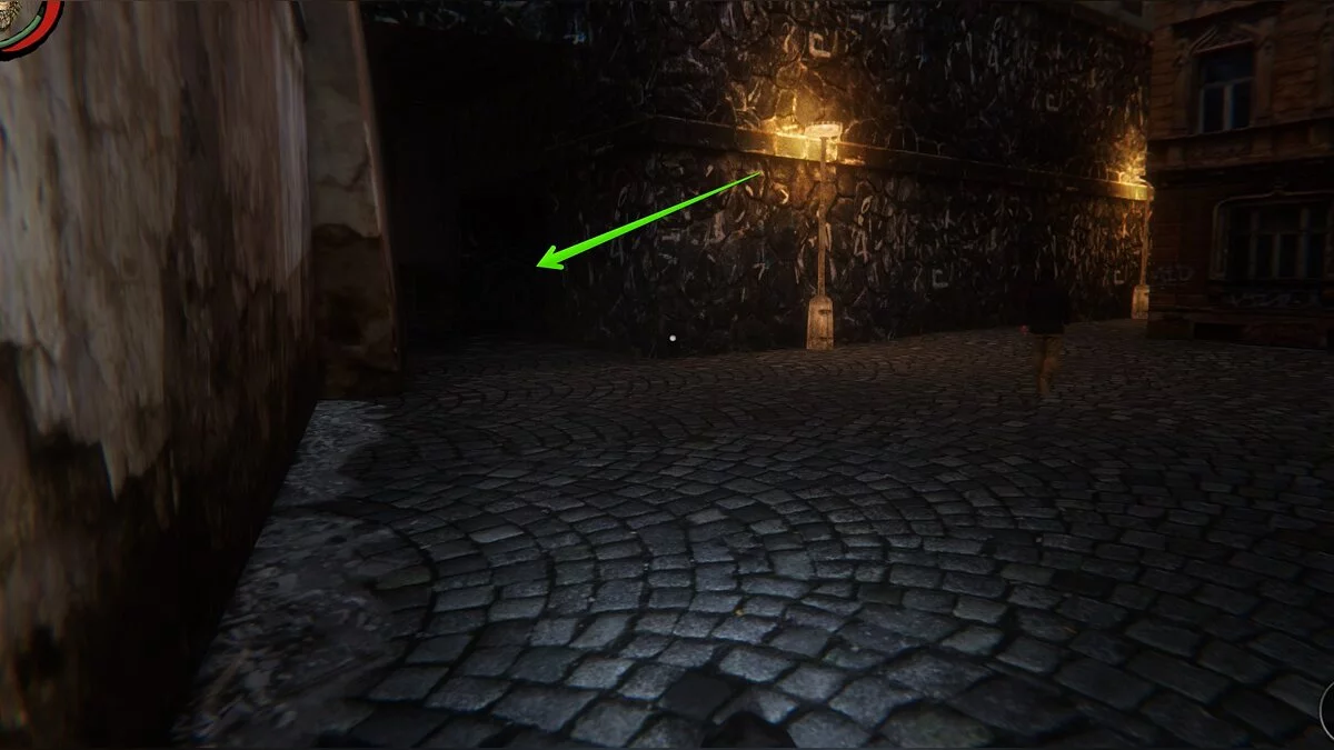 Профессор так расстроится, что забудет забрать у вас ключ и камеру. Теперь вам нужно отыскать дверь, к которой подойдёт этот ключ. Если вы стоите лицом к дому профессора, обернитесь и отыщите арку справа. Найдите небольшой проход между стенами, за которой находится дверь серого цвета.