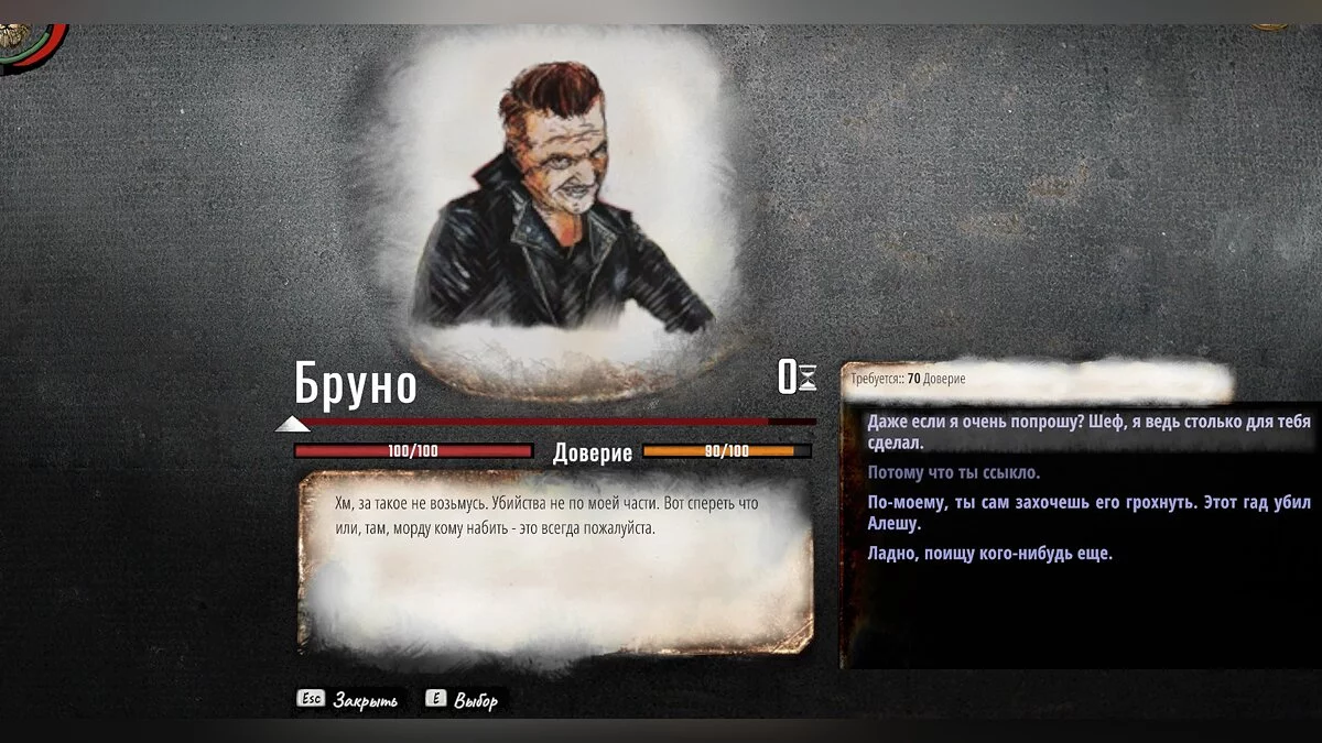 Добейтесь 25 единиц доверия Медведя и снова поговорите с ним. Он попросит раздобыть ему полный комплект байкерских шмоток. В игре такие вещи попадаются довольно редко. Все вещи время от времени можно будет приобрести в комиссионке Анатолия.