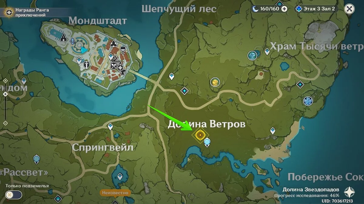 Вернитесь в штаб Ордо Фавониус, побеседуйте с Лизой и Джинн. Они попросят вас пообщаться с Барбарой на следующий день с 12:00 до 18:00 на центральной площади города. Ускорьте время, поговорите с Барбарой и отправляйтесь в Долину Ветров (быстрое перемещение «Статуя семи Архонтов»).