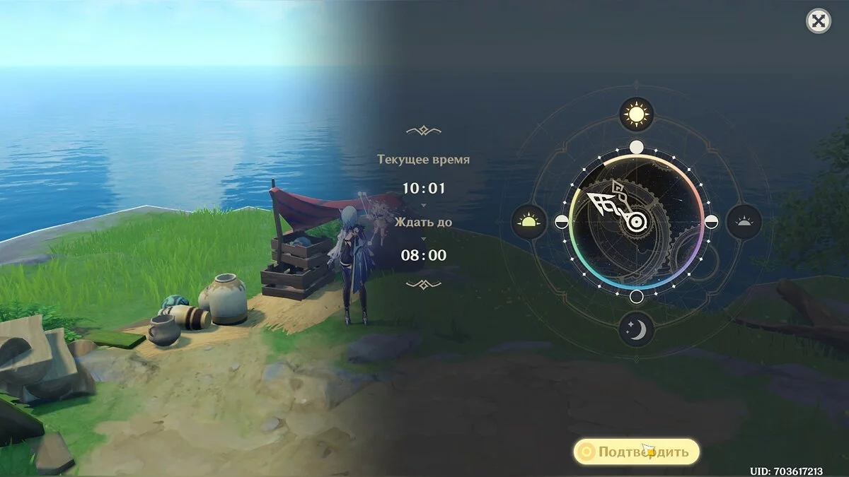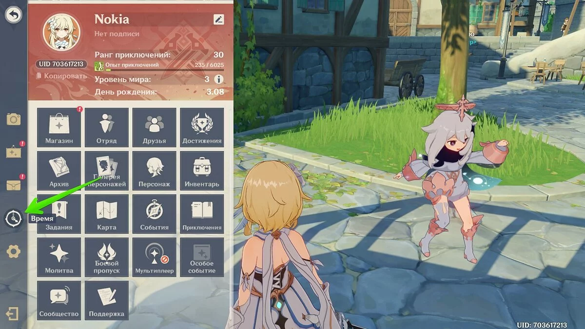 Откройте журнал задач, выберите задание и нажмите «отслеживать». Отправляйтесь в таверну Мондштадта и дождитесь наступления ночи. Это можно сделать в меню Паймон. Нажмите клавишу Esc или Options на геймпаде и в открывшемся меню выберите раздел «Время».