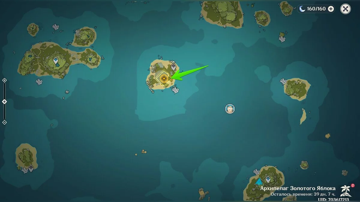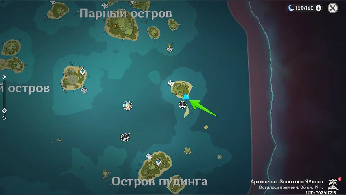 Здесь вы встретите Венти и Двалина, которые перенесут вас в новую локацию «Архипелаг Золотого Яблока», на Остров пудинга.