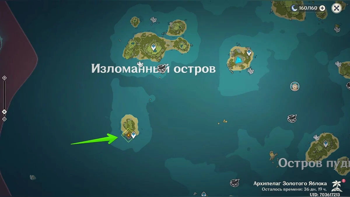 Вернитесь в лагерь на Острове пудинга и отдохните до раннего утра (в меню Паймон нужно выставить часы на 06:00). Поговорите с Барбарой и Джинн затем направляйтесь на остров неподалёку.