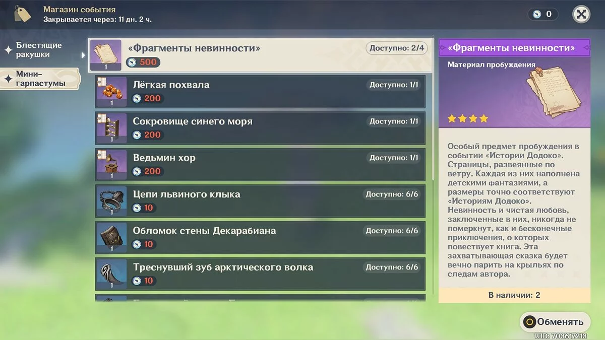 За выполнение испытаний события вы будете получать специальную ивентовую валюту «Блестящая ракушка». Ракушки можно потратить в тематическом магазине события.