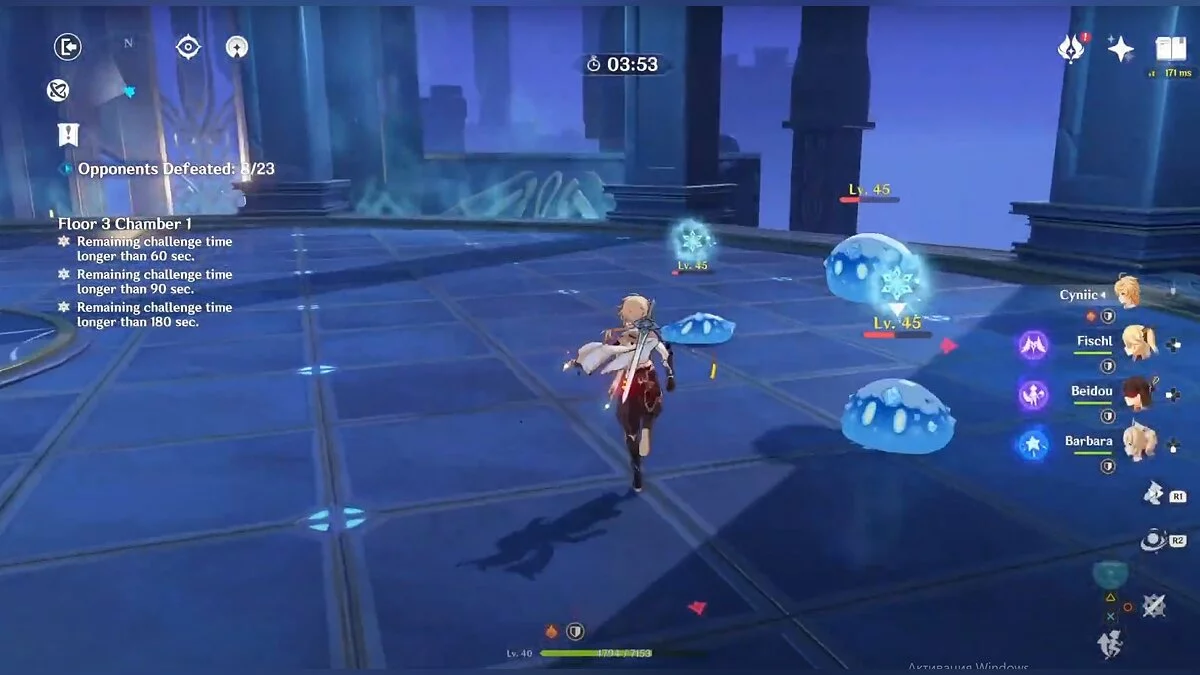 - 1-й зал. В качестве бонуса выбирайте увеличение мастерства стихий на 80 единиц. Чередуйте атаки магией льда (Крио) и воды (Гидро), чтобы заморозить электро слаймов, после чего добивайте их.