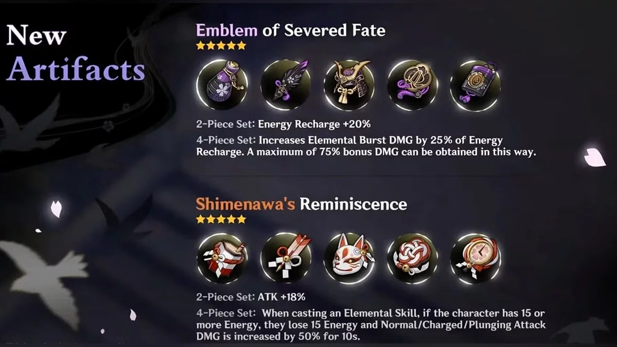 С обновлением 2.0 в Genshin Impact появились новые наборы артефактов — «Эмблема рассечённой судьбы» и «Воспоминания Симэнавы». В этом гайде мы расскажем об их характеристиках и как получить эти комплекты в самой игре.