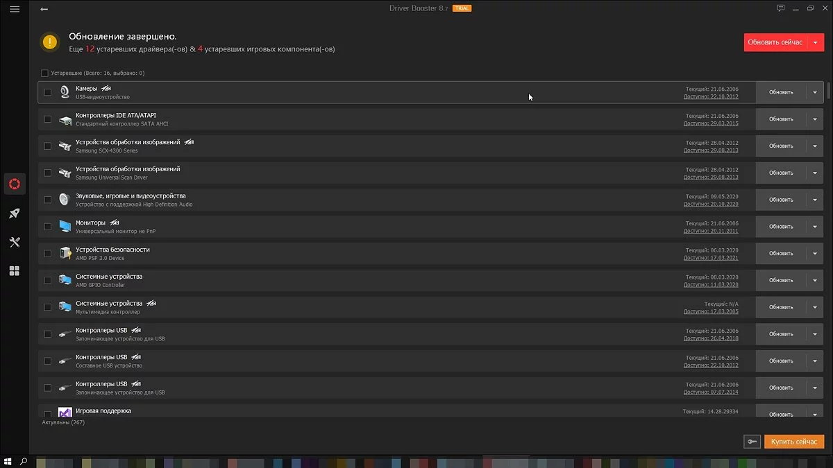 Также можно использовать специальную платную утилиту Driver Booster, которая найдет и обновит драйверы автоматически. Вручную это сложно сделать, так как нужно проверить каждое устройство. Программа это делает самостоятельно. Даже если вы не собираетесь покупать лицензию, воспользоваться ей стоит хотя бы для поиска устаревших драйверов на вашей системе. Скачать обновления можно и вручную.