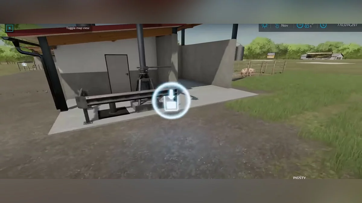 Навоз — продукт жизнедеятельности некоторых животных. Обычно он в жидком состоянии и автоматически собирается в сараях. Место отмечено значком со специальной колбой и стрелкой вниз. Для сбора потребуется своя цистерна из магазина. Принцип тот же, что и с водой, только на этот раз емкость будет наполняться. Навозом можно удобрять свои поля, либо продавать его в магазинах.