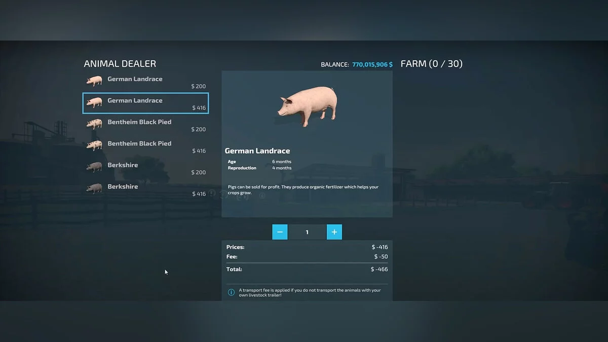Обратите внимание, что у всех видов животных есть свои породы, которые в свою очередь делятся по возрасту. Переплачивать за породу нет никакого смысла, так как свойства у всех животных одного вида одинаковые. Однако стоит определиться с возрастом, который влияет на репродуктивность (размножение). Соответственно более взрослые животные быстрее принесут потомство и ресурсы на продажу, но стоят ощутимо дороже. Покупая только дешевые породы самых молодых животных, вы сможете существенно сэкономить, но получите точно такие же ресурсы.