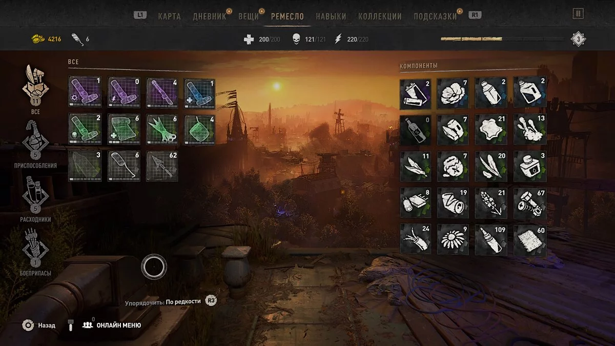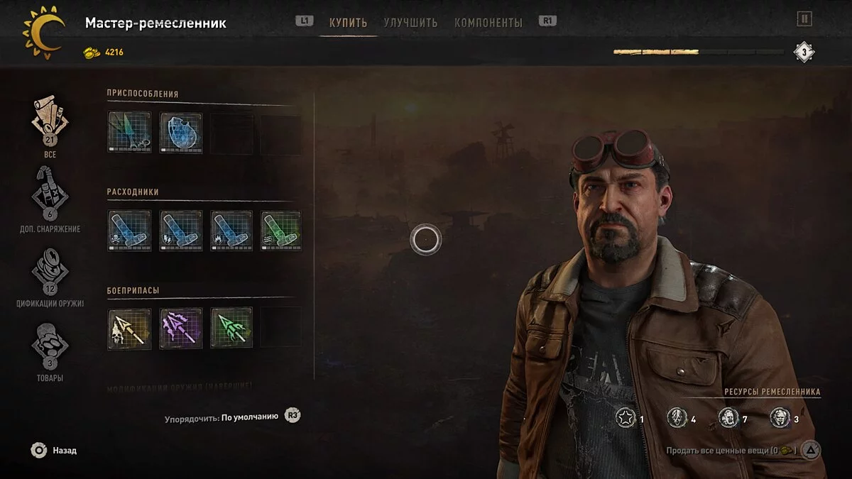 Каждый рецепт можно улучшить — это повысит эффективность созданной вещи. К сожалению, скрафтить оружие или одежду не получится, так как их необходимо покупать или находить в открытом мире. Со временем Эйден научится самостоятельно собирать различные обвесы для своих «палок», что значительно усилит их смертоносность.