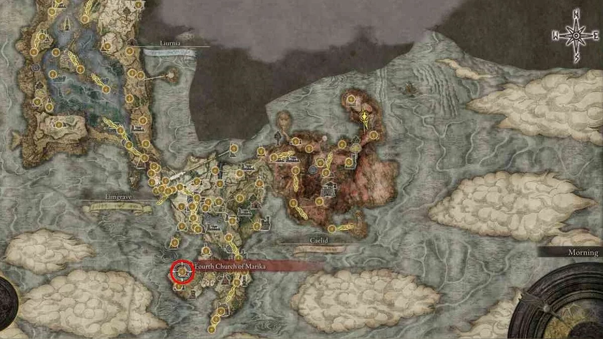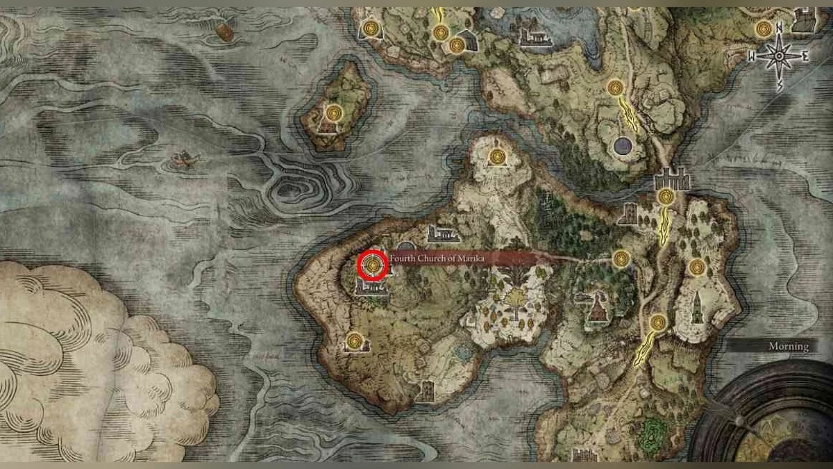 Священная слеза №8. Двигайтесь на юго-восток от Второго храма Марики. Слеза находится на алтаре в Церкви Призывателя бури. На вашем пути встретится несколько мини-боссов, но убивать их необязательно.