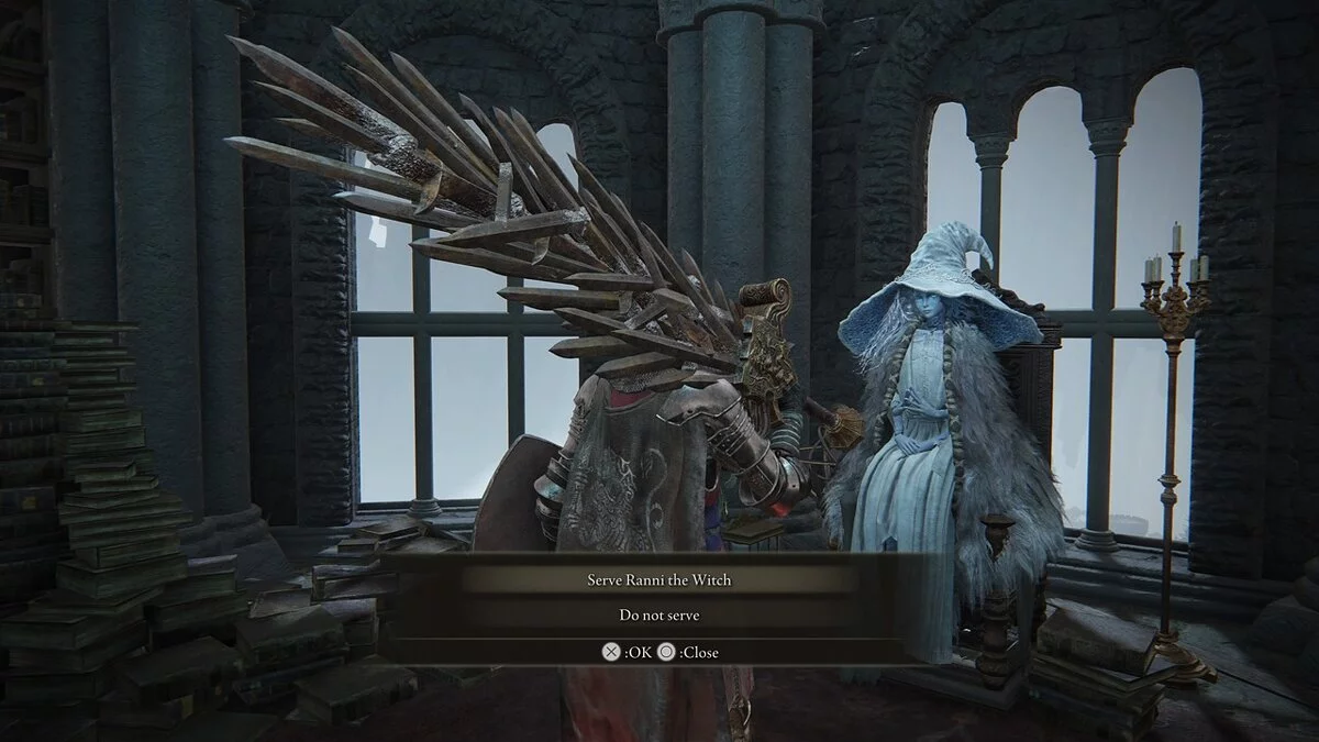 После этой встречи девушка растворится и перенесётся в свой храм (Ranni's Rise), который расположен на северо-западе мира неподалёку от поместья Карии. Добравшись до этой локации, ведьма предложит путнику служить ей, но нужно ли это делать?