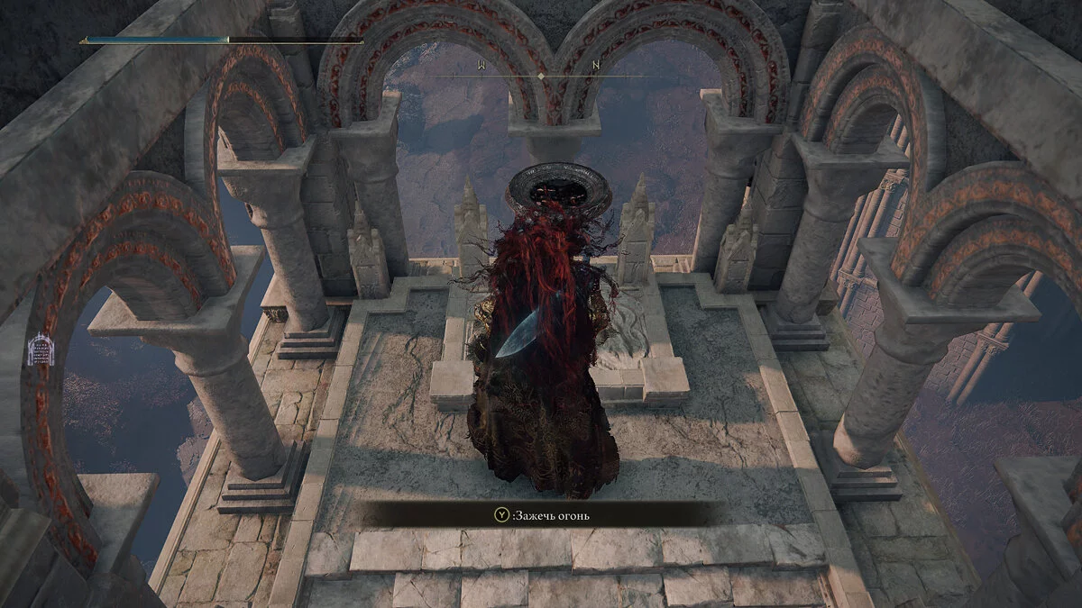 Как зажечь первую жаровню. Она находится в самой северной точке города, на вершине лестницы. Ориентир — светящееся дерево, под которым можно найти золотое семечко. Также поблизости есть гигантский магический барьер. От золотого дерева повернитесь лицом на юго-запад. Затем перепрыгните через горшки возле сломанной части стены на гигантскую ветку дерева. Аккуратно пройдите по ветке и прыгайте на башню справа с красной плесенью, покрывающей уступ. Взберитесь по лестнице на вершину башни и зажгите первую жаровню.