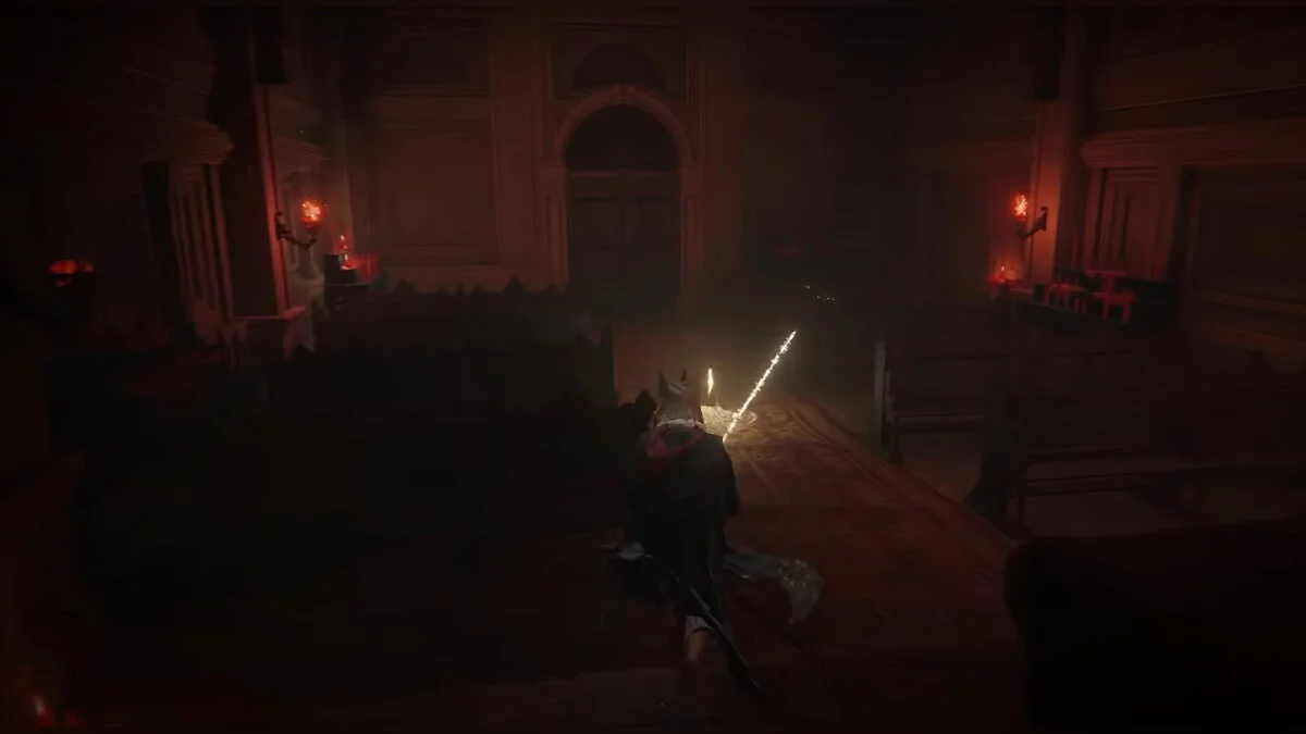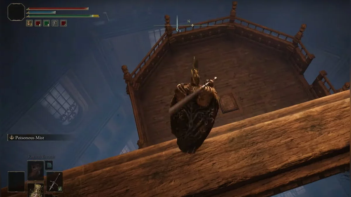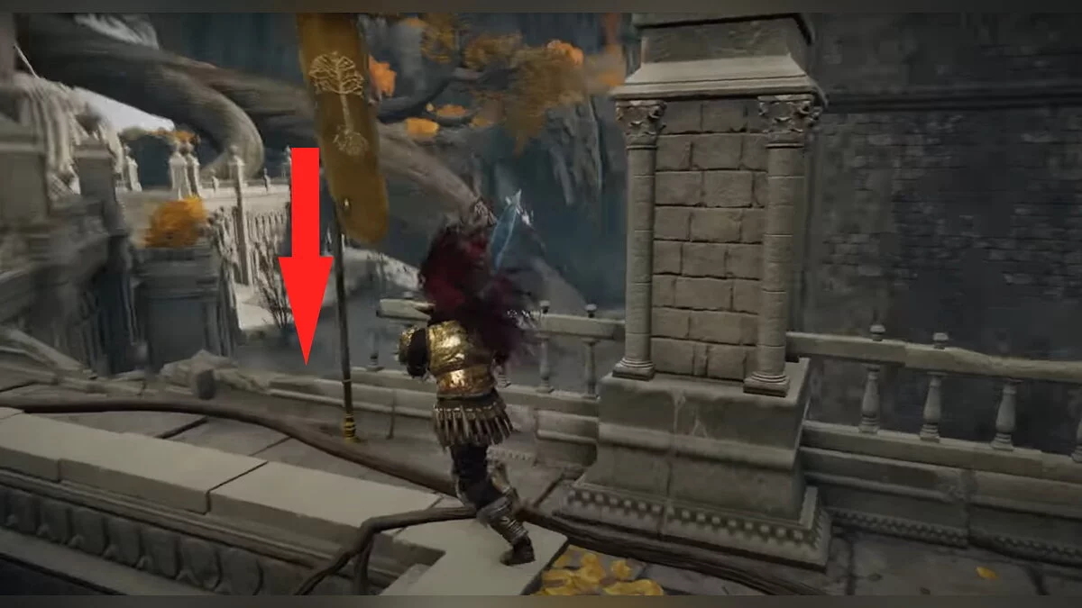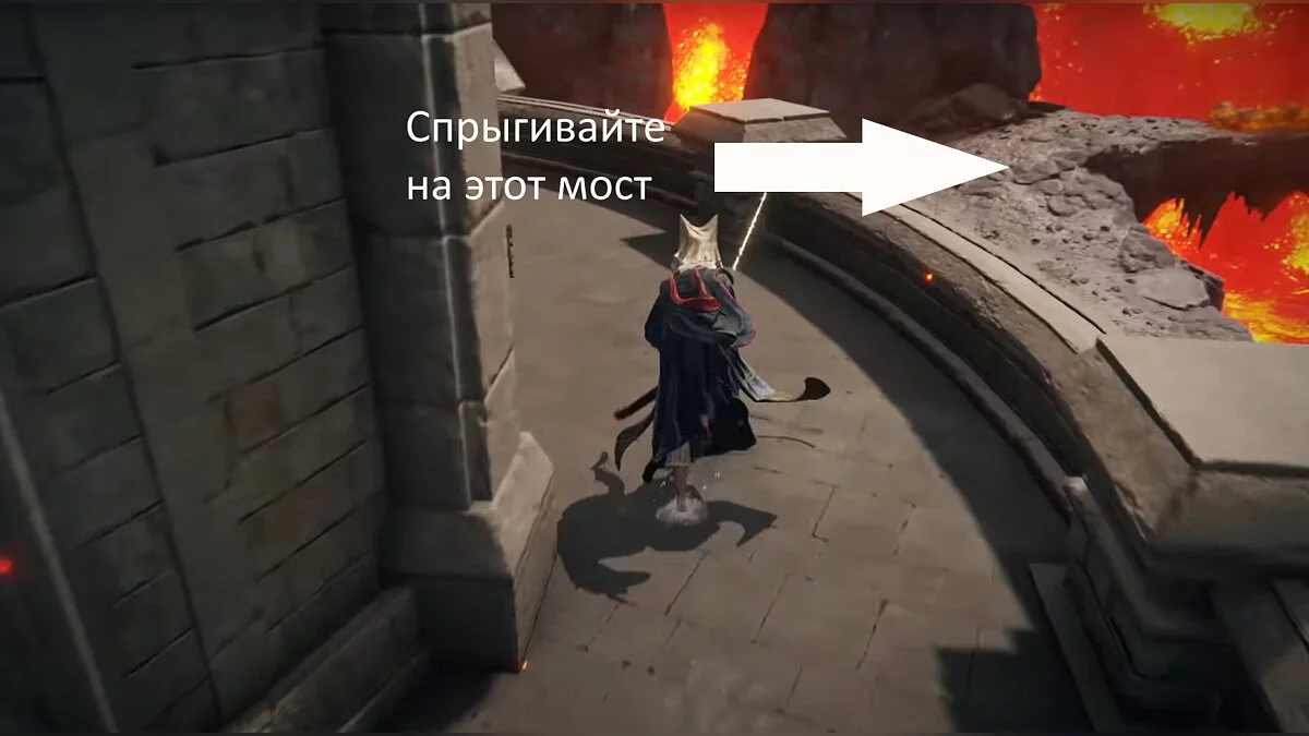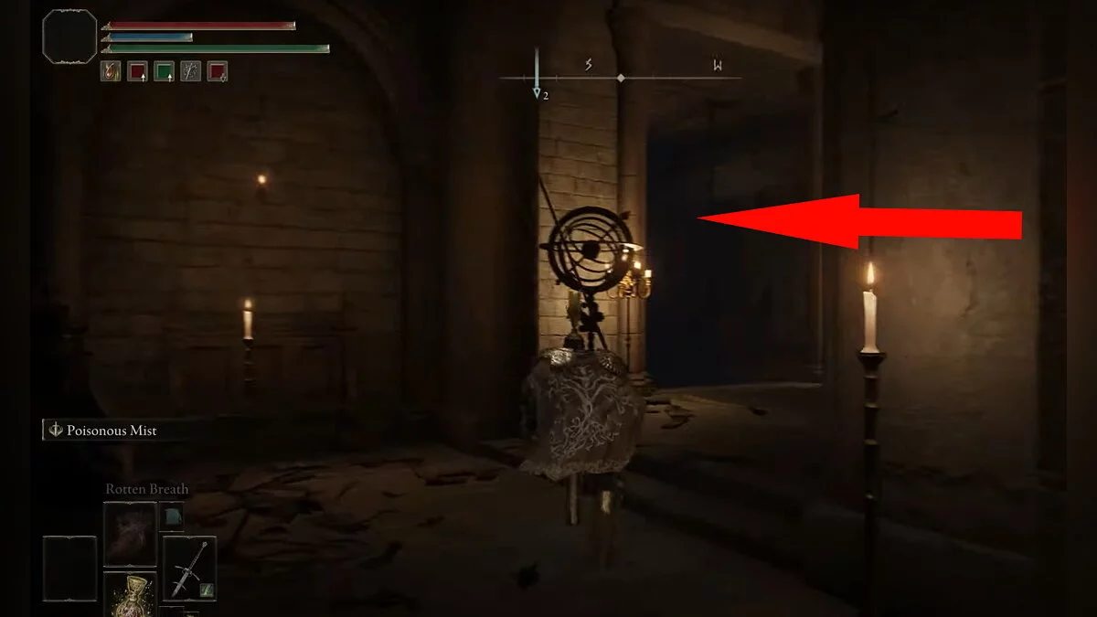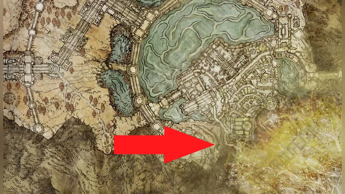 Возвращайтесь к месту благодати «Побережье озера Гнили», которое вы открыли после победы над призраком Блайда. Вам нужно перебежать на другую сторону водоёма. Ориентируйтесь по арке с двумя статуями. Используйте памятники, чтобы создавать безопасные мостки, где не накапливается красная гниль. При помощи кувырков вы будете передвигаться по озеру быстрее. Активируйте место благодати на другом берегу.