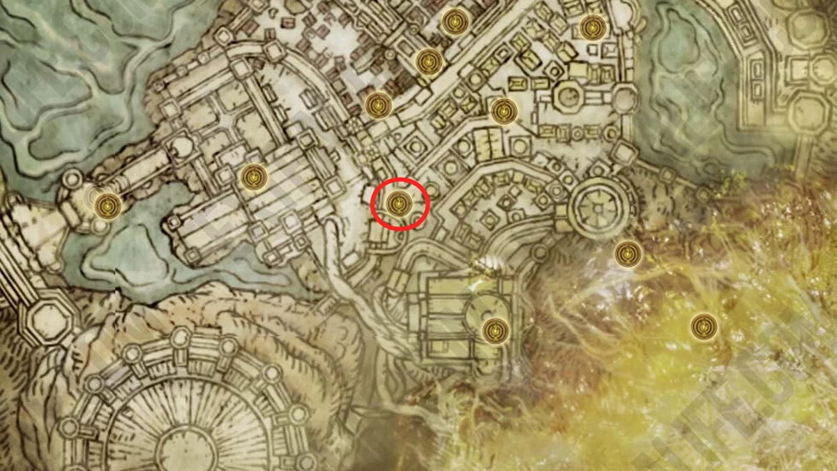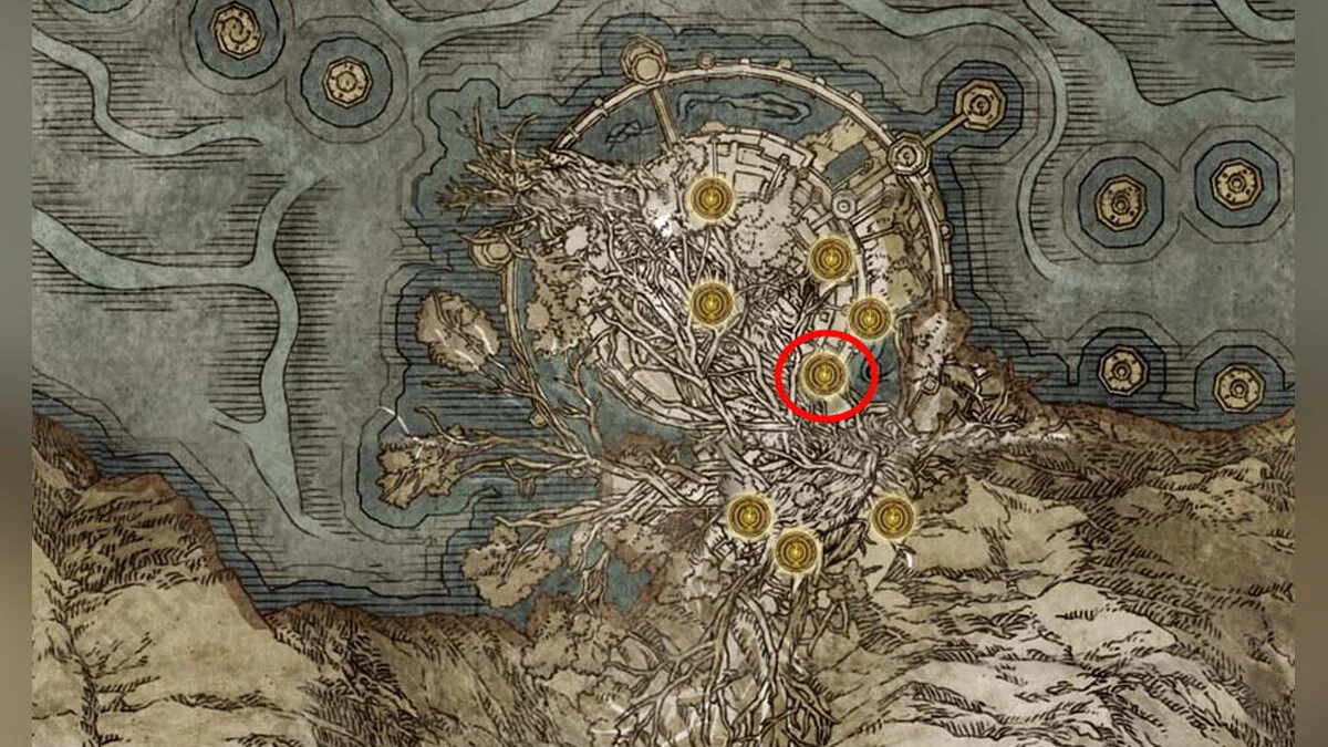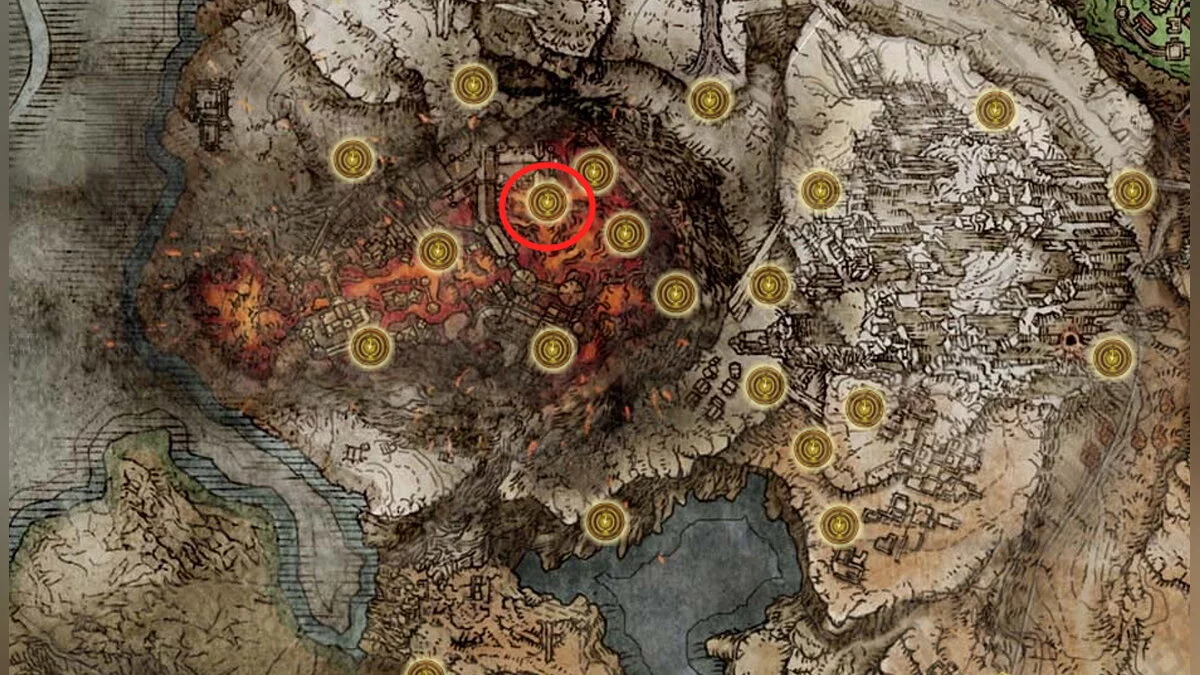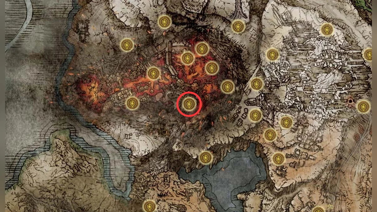 Вам нужно найти 5 Проклятий посева. Их местоположения мы указали на картах и скриншотах. Кружком обозначены ближайшие места благодати.