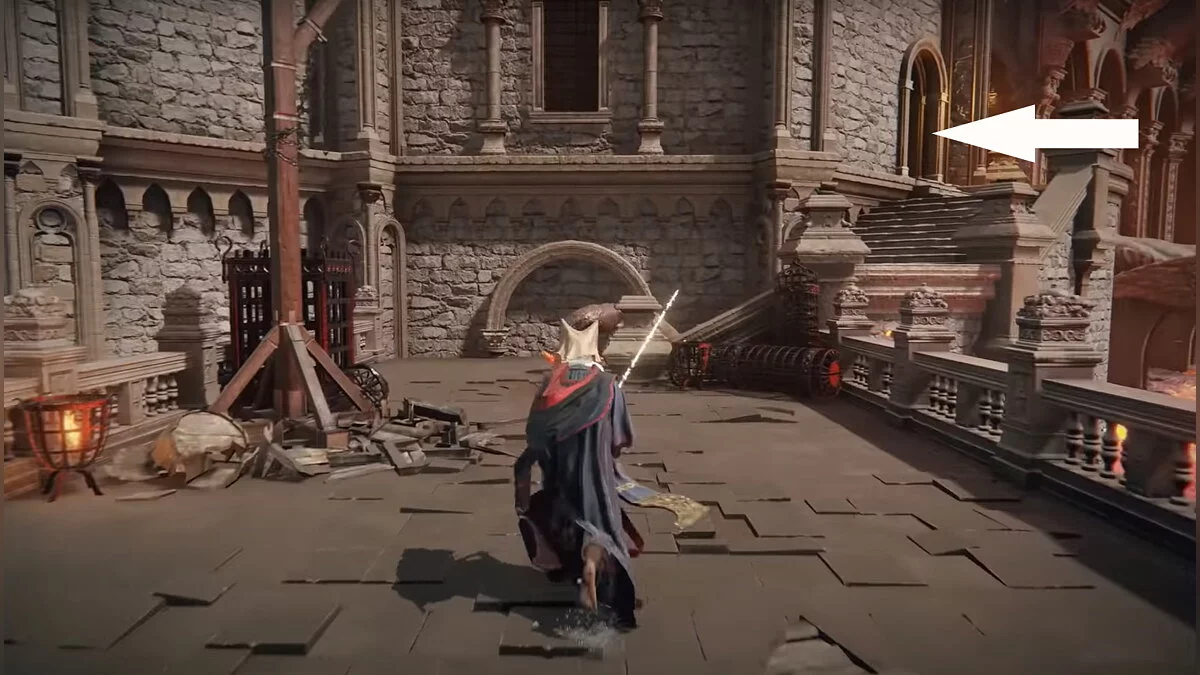 Бегите вперёд, мимо руин дворца Уль, пока не доберётесь до Вечного города Нокстеллы. По ступенькам поднимайтесь наверх, а затем двигайтесь направо. Проходите через мост и забирайтесь по лестнице слева. Заходите в здание и выходите из него через дверь слева. Поднимайтесь по ступенькам и заходите в помещение. Слева есть выход, который приведёт вас к лифту. Активируйте его.