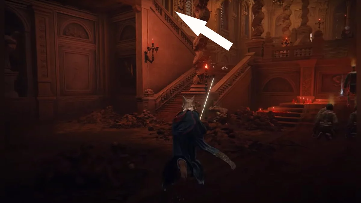 После победы над Священником-зверем столицу накроет пеплом. Вам необходимо добраться до указанной точки и забрать Целую руну высшего порядка с тела Золотой маски.