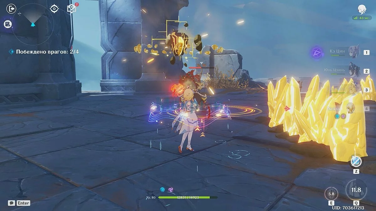 Боссы наносят огромный урон, поэтому ваша главная задача — не потерять героев. Сперва используйте активные навыки гео-персонажей и собирайте кристаллы, затем атакуйте Кэ Цин. Отметим, что защита кристаллов будет уничтожена после единственного удара врага, поэтому полагаться на неё нет особого смысла.