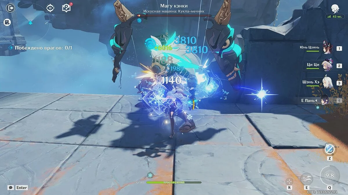 Используйте активные таланты Юнь Цзинь, затем Ци Ци и Шэнь Хэ, после чего добивайте врагов Е Лань. В этом случае вы не только будете наносить большой урон, но и замораживать обычных врагов.