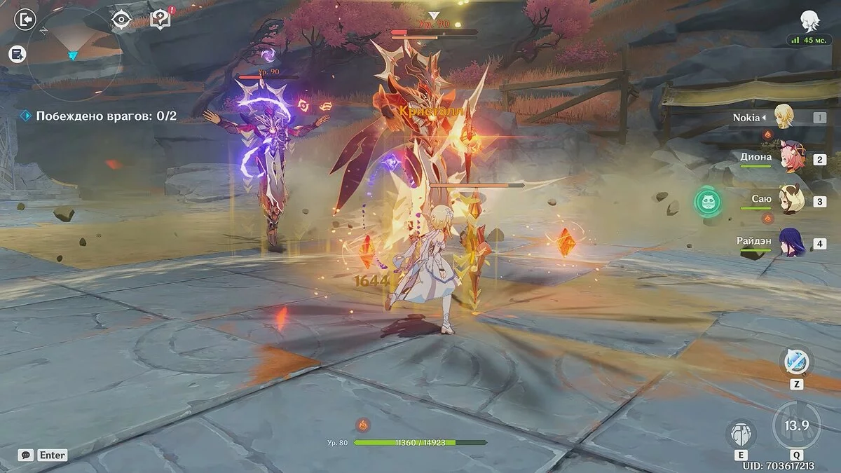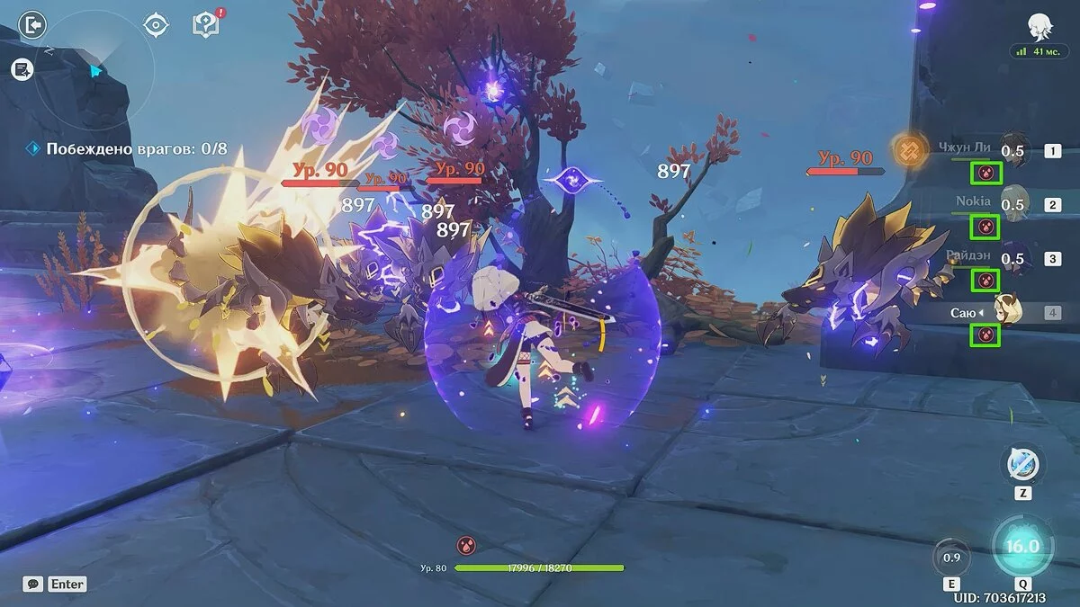 Лучше всего разорвать расстояние или использовать взрыв стихий Чжун Ли, так как он на некоторое время заморозит врагов.