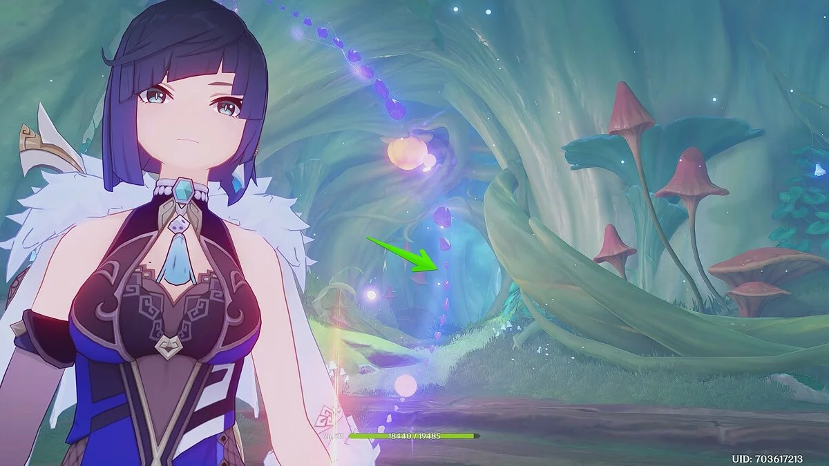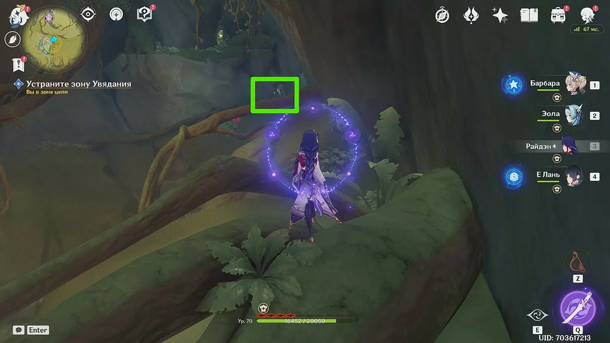 Призовите дендрогранумы и активируйте при помощи них мишени зелёного цвета. Когда над куполом будет три мишени, подойдите ближе и пробудите молодой дендрогранум. Стреляйте по зелёным мишеням поочередно. Купол исчезнет, а вы сможете подняться выше.