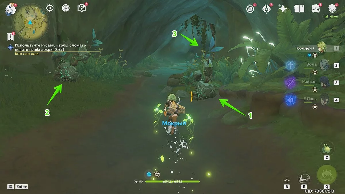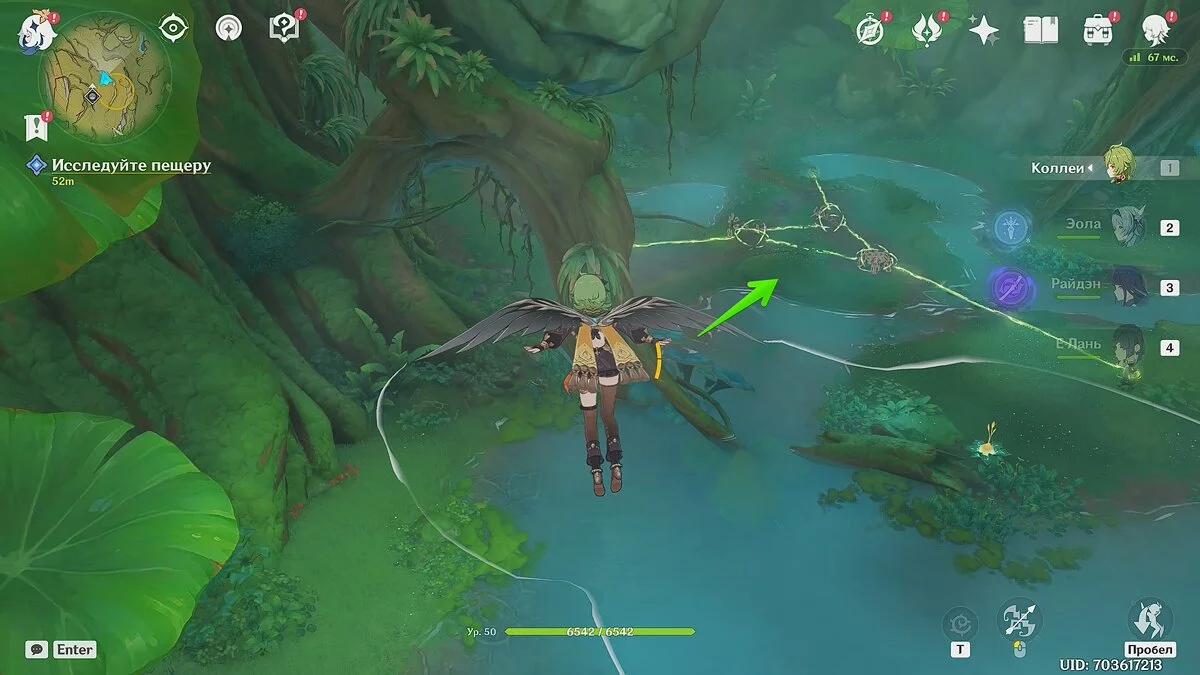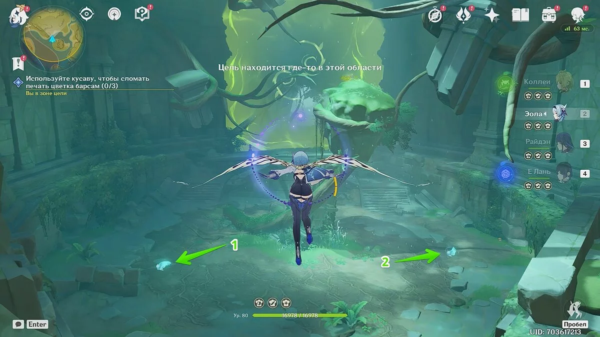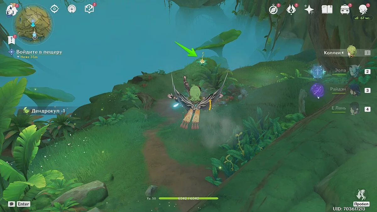 На входе подберите дендрокул и примените стихию Дендро на бутоне, чтобы создать четырёхлистные символы.